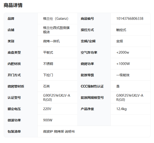 格兰仕 空气炸微波炉G90F25YeSXLV-AR(G0)