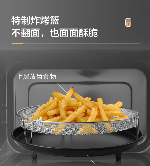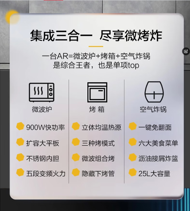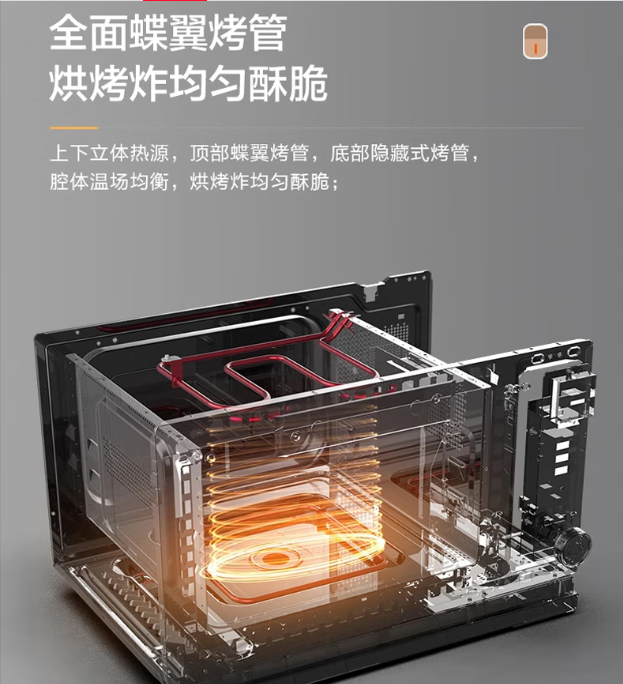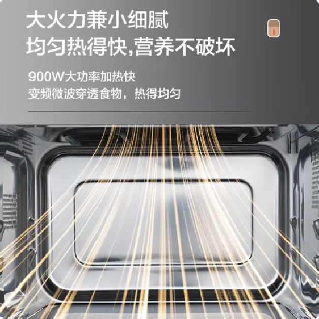 900W大功率25L大容量;零涂层不锈钢内胆智能变频微波炉;后置热风空气炸功能