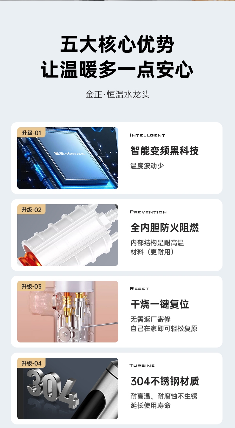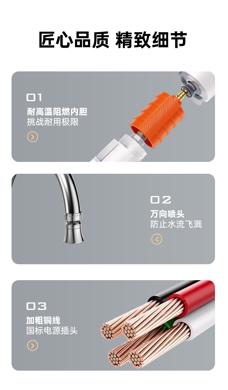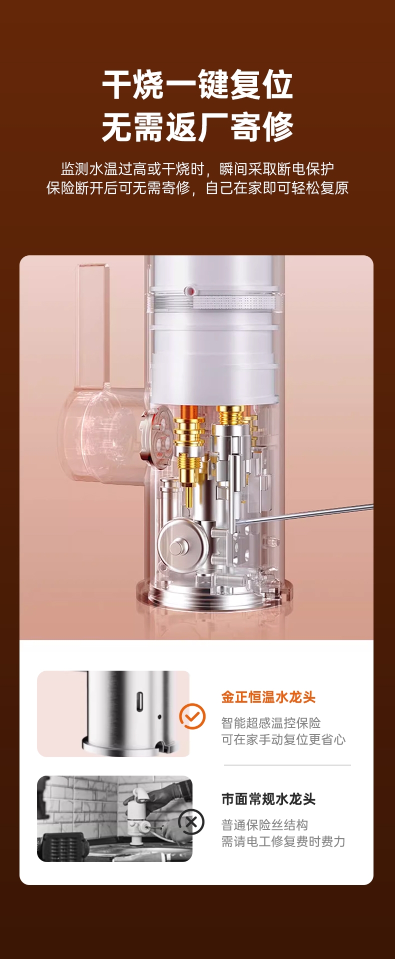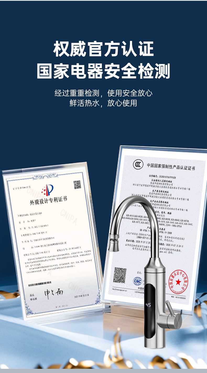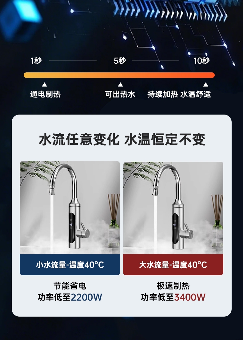 304不锈钢拉丝工艺 坚固耐用、耐腐蚀;安全漏保智能数显;360°旋转弯管告别日常清洗死角