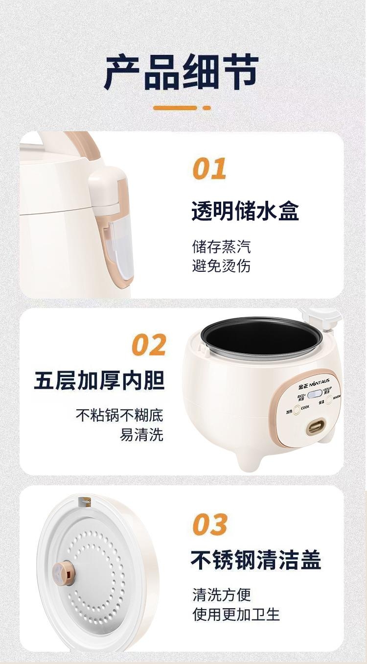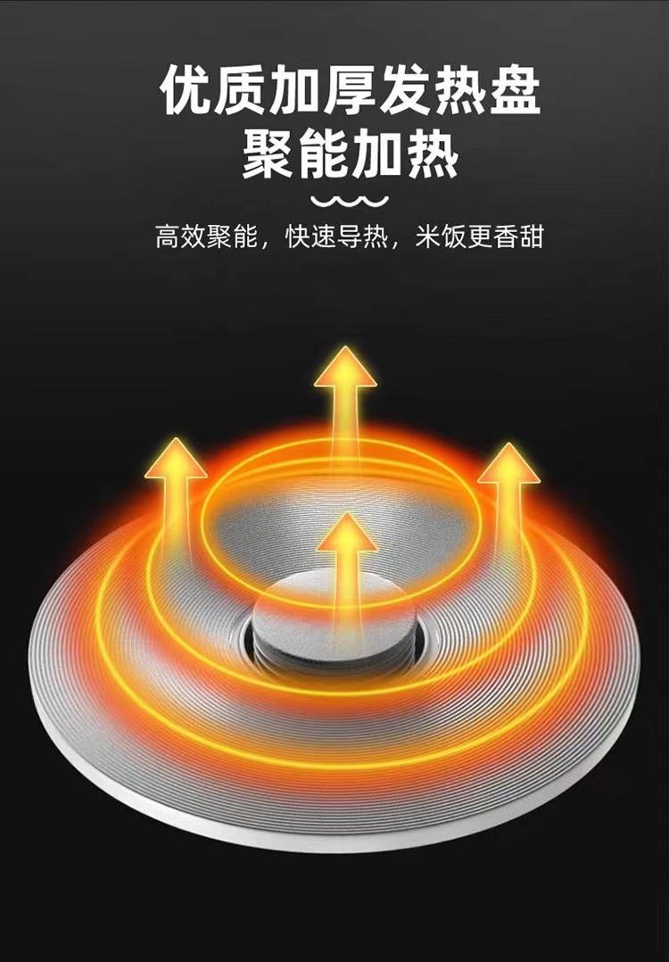 老人小孩操作便捷 一键煮饭 自动保温;优质加厚发热盘聚能加热;小功率精煮宿舍不跳闸