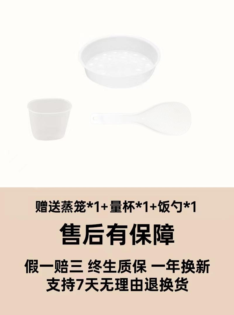 配置清单:电饭锅*1,蒸笼*1,锅铲*1,量杯*1