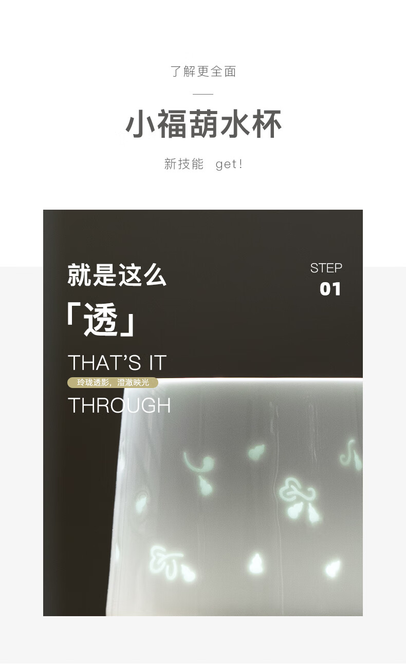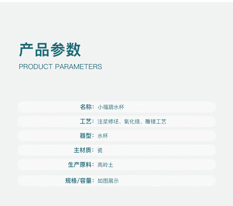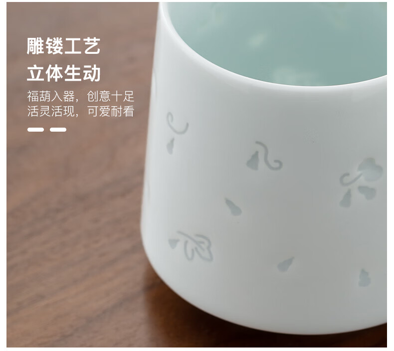 杯口直径8CM,可轻松投茶注防喷防酒,保持桌面清爽;380ML容量,满足日常所需 肆意畅饮无拘束;雕镂工艺,一刀一划,形成错落有致的镂空葫芦