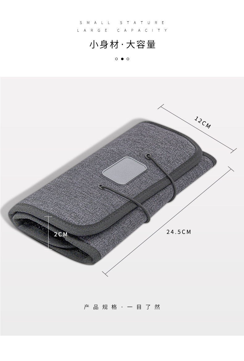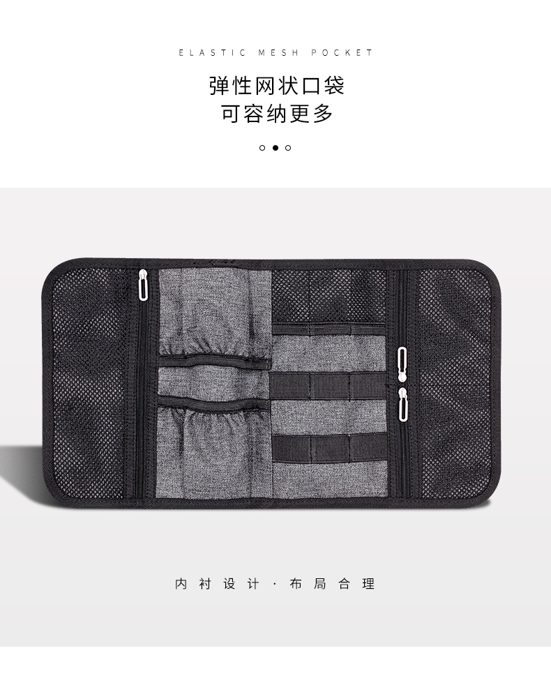 不同尺寸的口袋 妥当整理你的随身物品;防水防尘布料;橡筋弹性收纳设计能令你 拥有最大限度的调整和容 纳