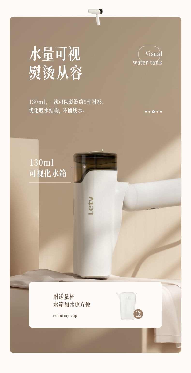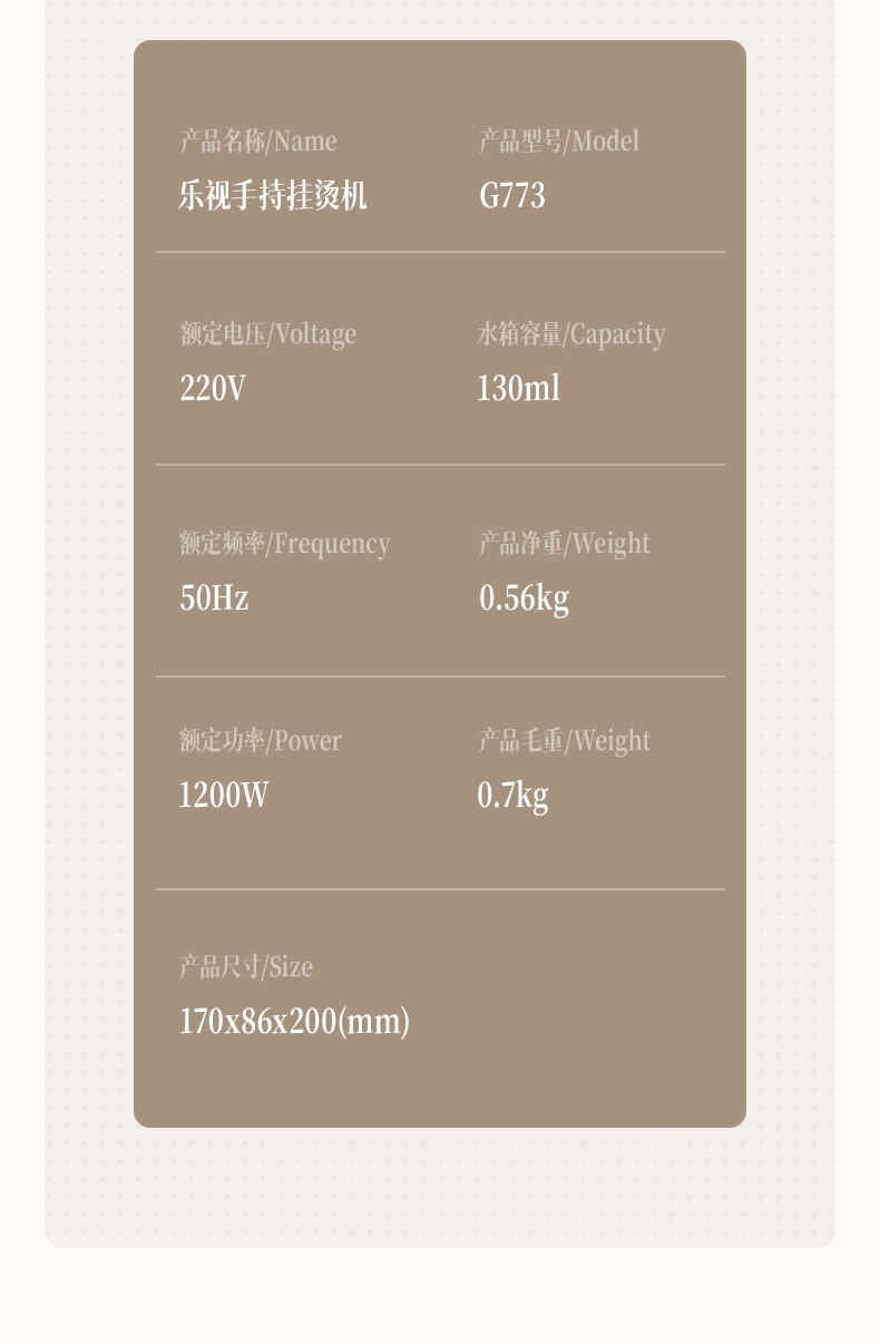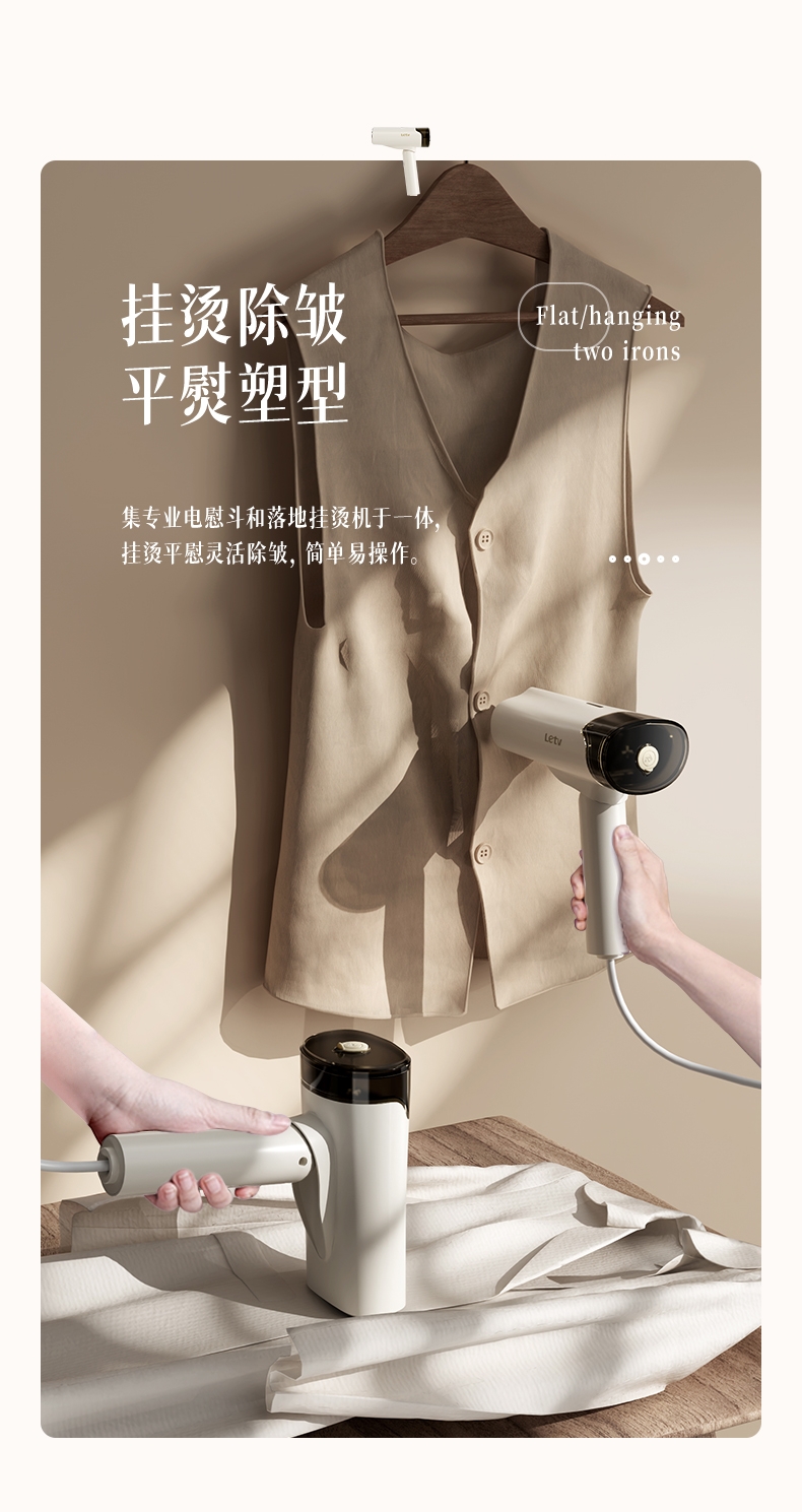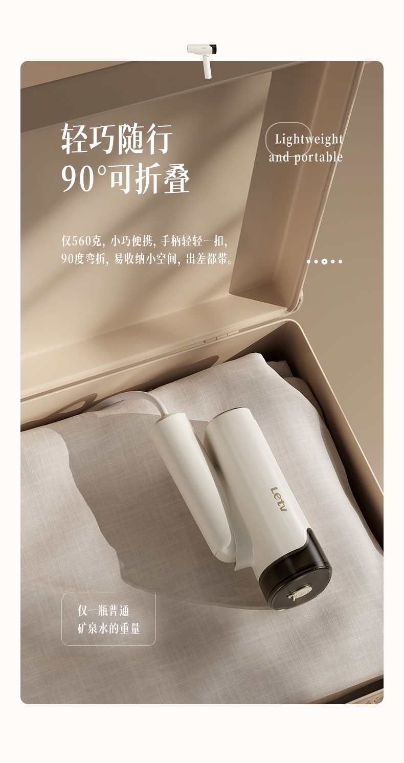 可90°折叠收纳、挂熨平熨灵活除皱;1200W大功率,轻松软化纤维抚平衣服上的皱褶;不挑面料、170ml水箱