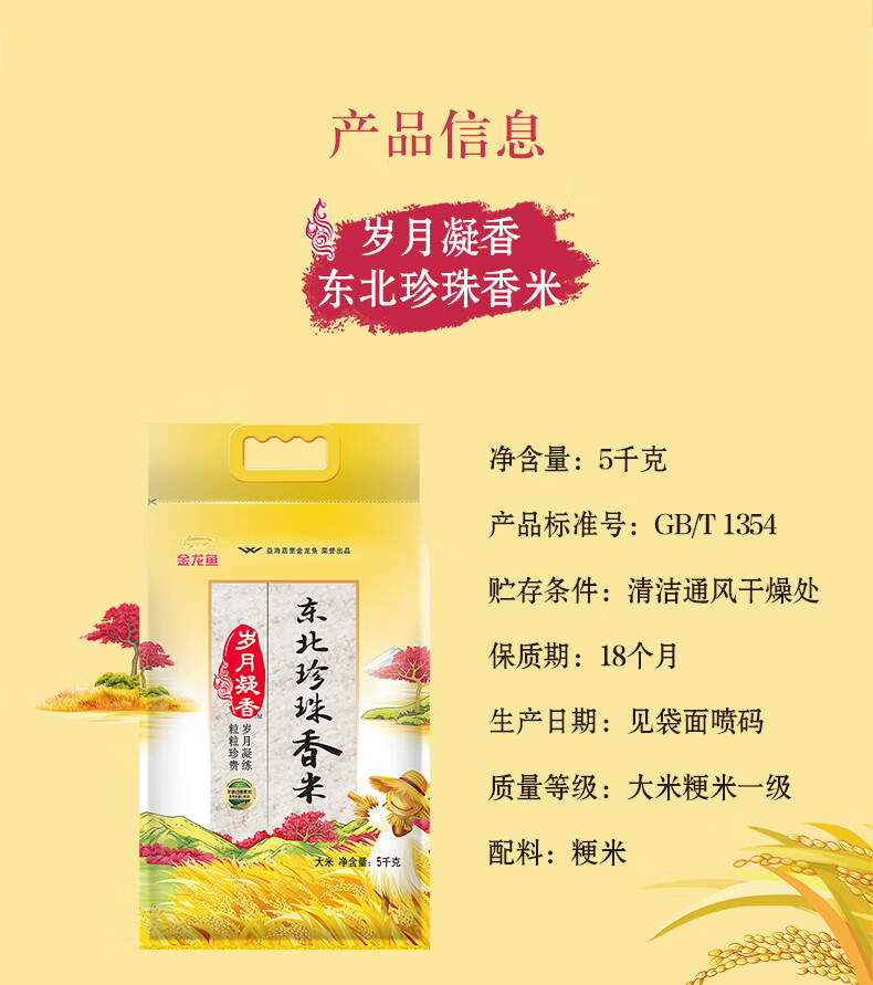 金龙鱼 岁月凝香东北珍珠香米5KGA01130113