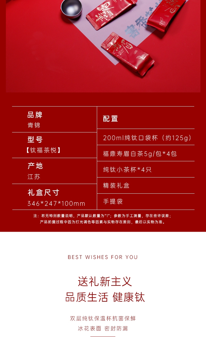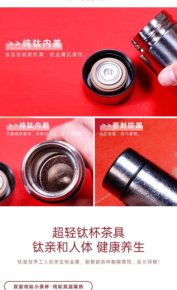 双层纯钛小茶杯·纯钛双层隔热;双层钛杯·杯身轻盈·随身随行;双层纯钛保温杯抗菌保鲜 冰花表面 密封防漏;福鼎白茶 四包独立包装;免费定制专属腰封硫酸纸 赠礼更有新意