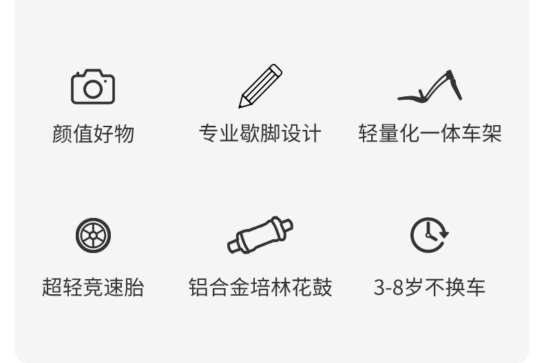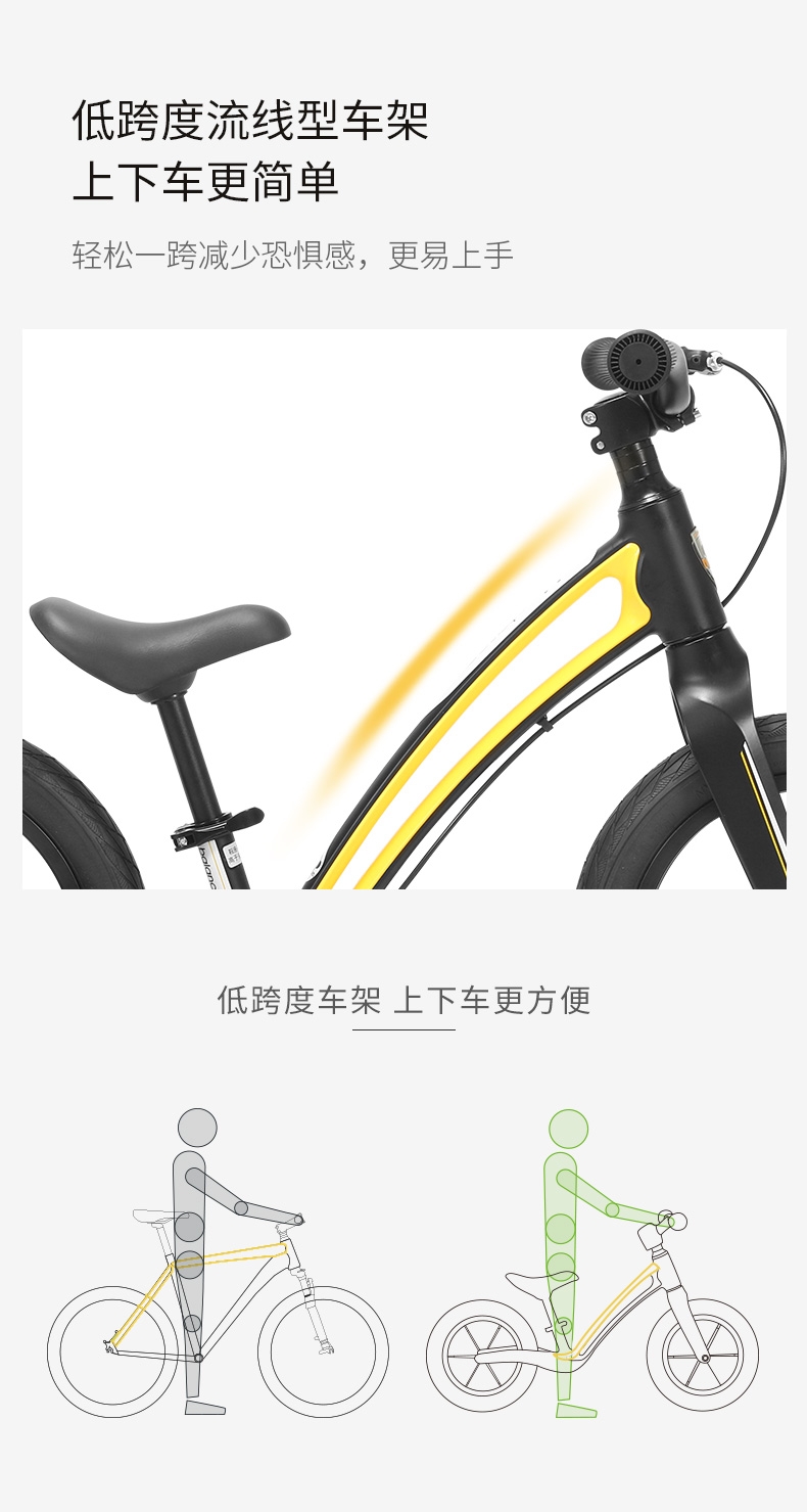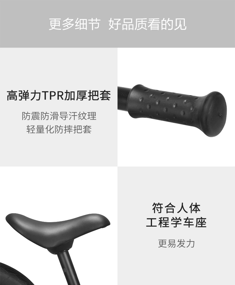 超轻竞速胎/铝合金培林花鼓/镁合金一体车架;低跨度流线型车架,上下车更简单;低跨度30度 歇脚板设计 磨砂脚踏 安全防滑