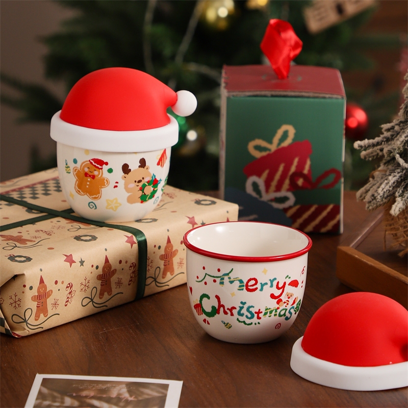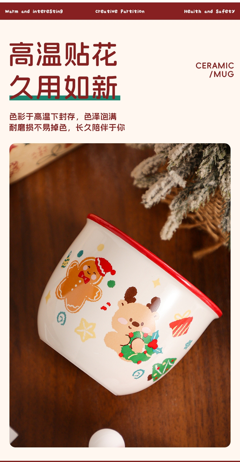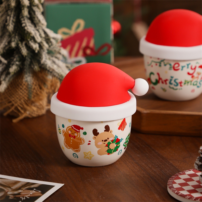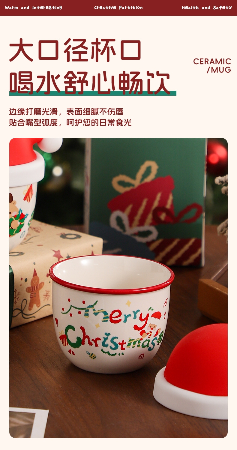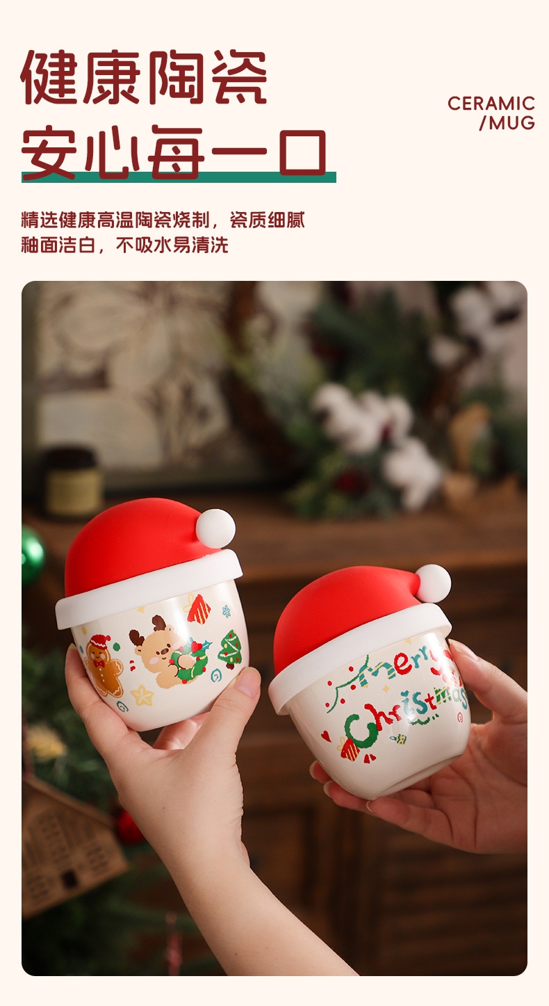 圣诞节日主题手握杯;陶瓷烧制、硅胶防尘盖;含盖,专属彩盒