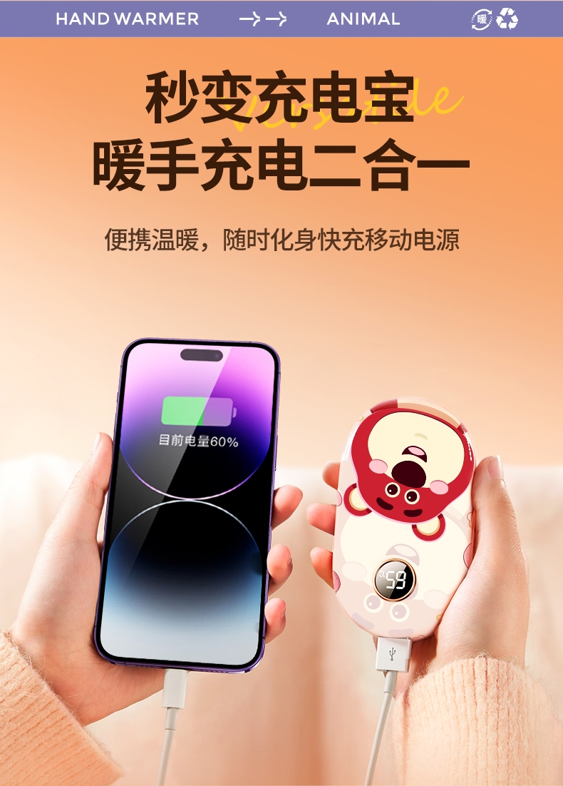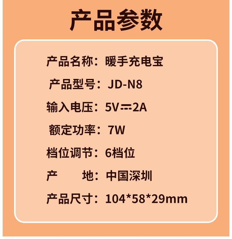 配置清单:暖手宝*1 说明书*1包装盒*1 包装袋*1 挂绳*1