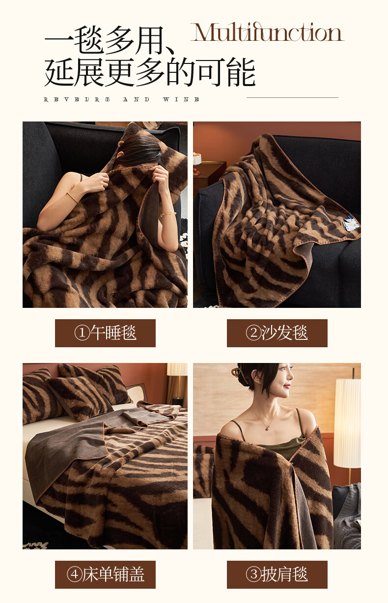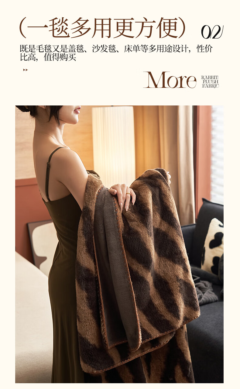 蕊丝坊 高克重兔毛绒多功能盖毯冬季保暖