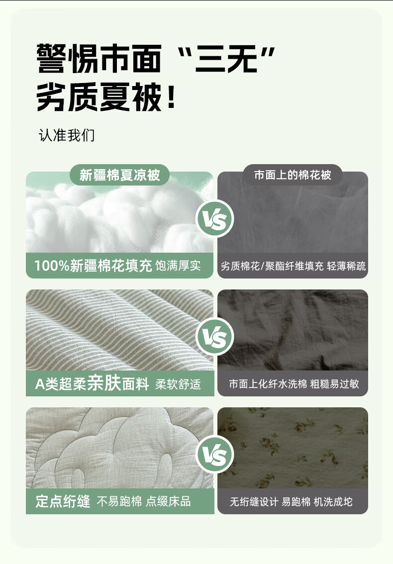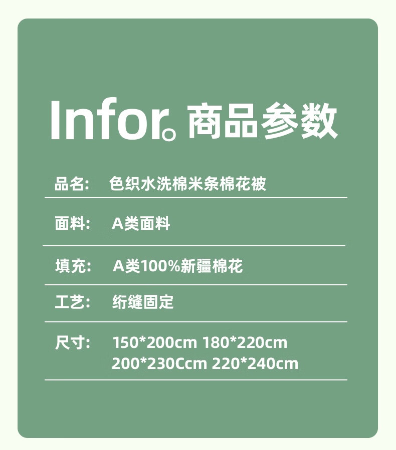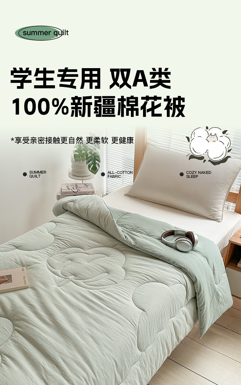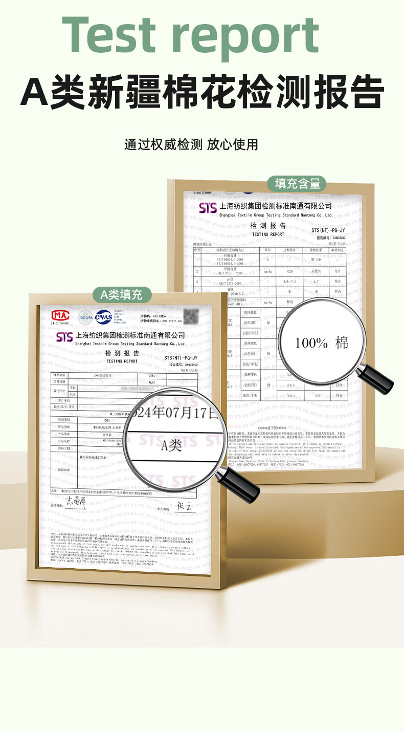 整张新疆棉花纤维填充,整张新疆棉花纤维填充;不易变形,轻盈不压身;精美绗缝定位设计,固定被芯,不易跑被