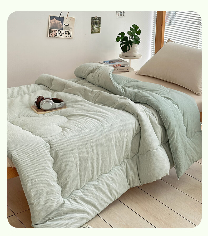 蕊丝坊 新款色织水洗棉米条棉花被冬被