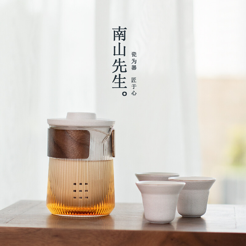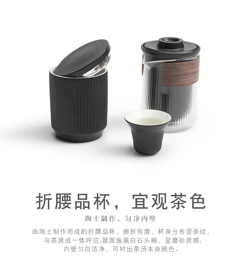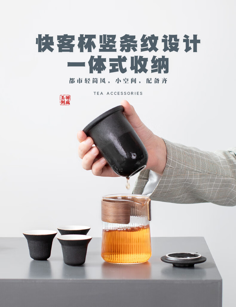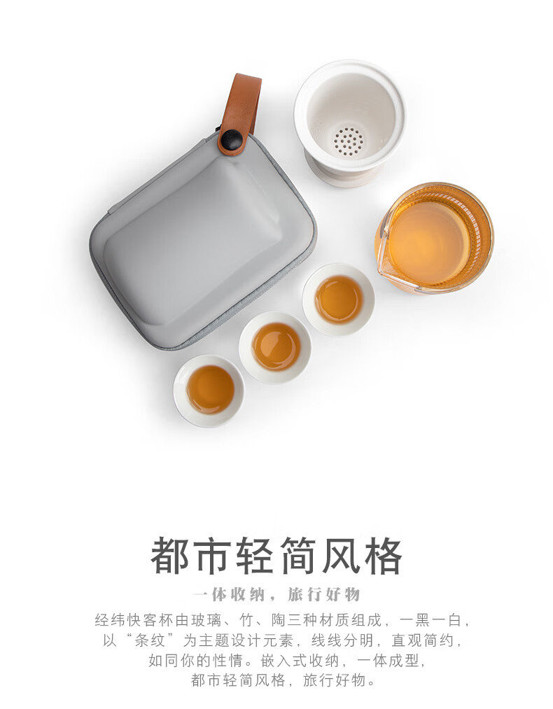误入时尚圈的经纬快客杯,通身被竖条纹环抱,直观有型;如同连接你我的经纬线;采用一体式收纳,一壶内嵌三杯