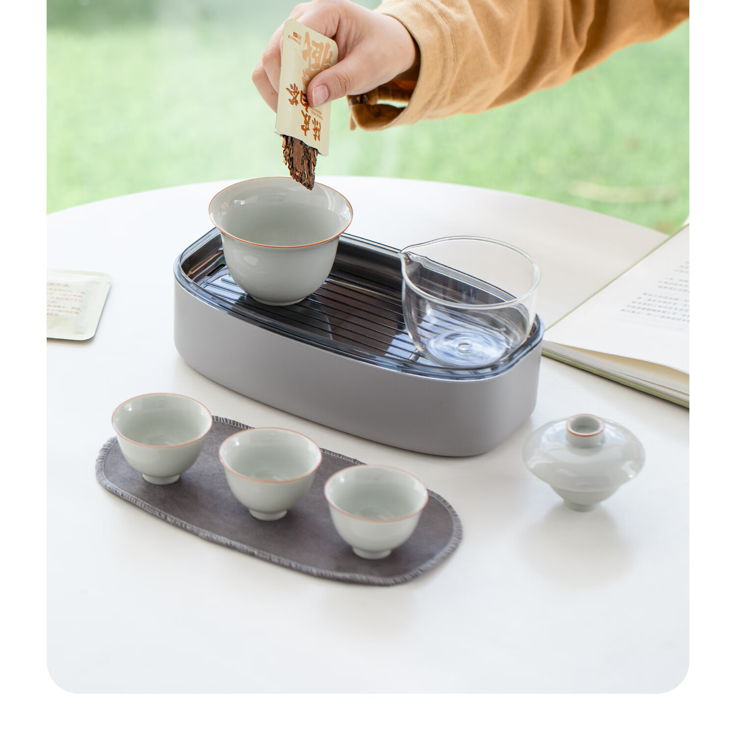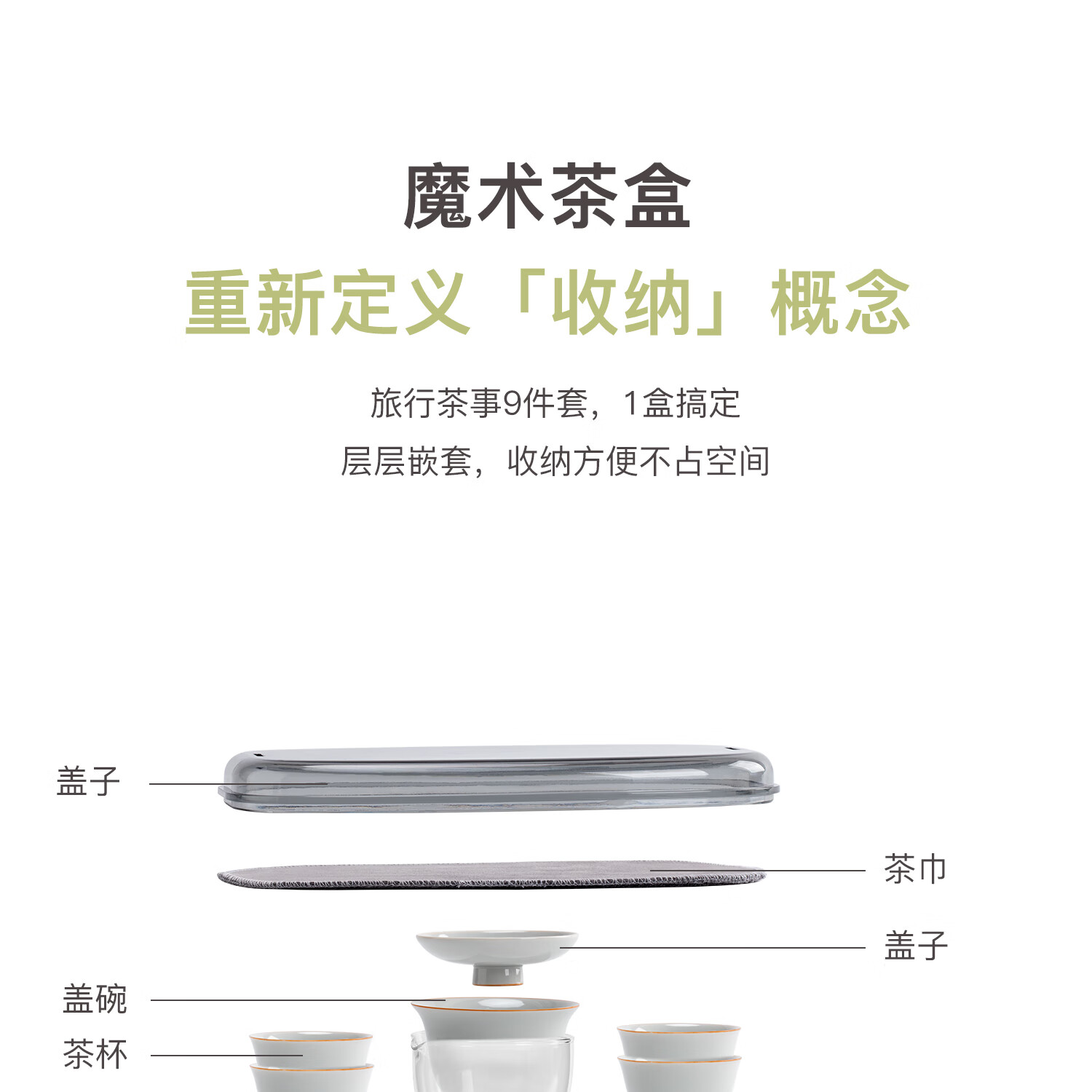 魔术茶盒 重新定义「收纳」概念;1盒9件茶具,盖碗、公杯、品茗杯一应俱全;无论阳台角落、露营茶事、分茶的仪式感始终在线