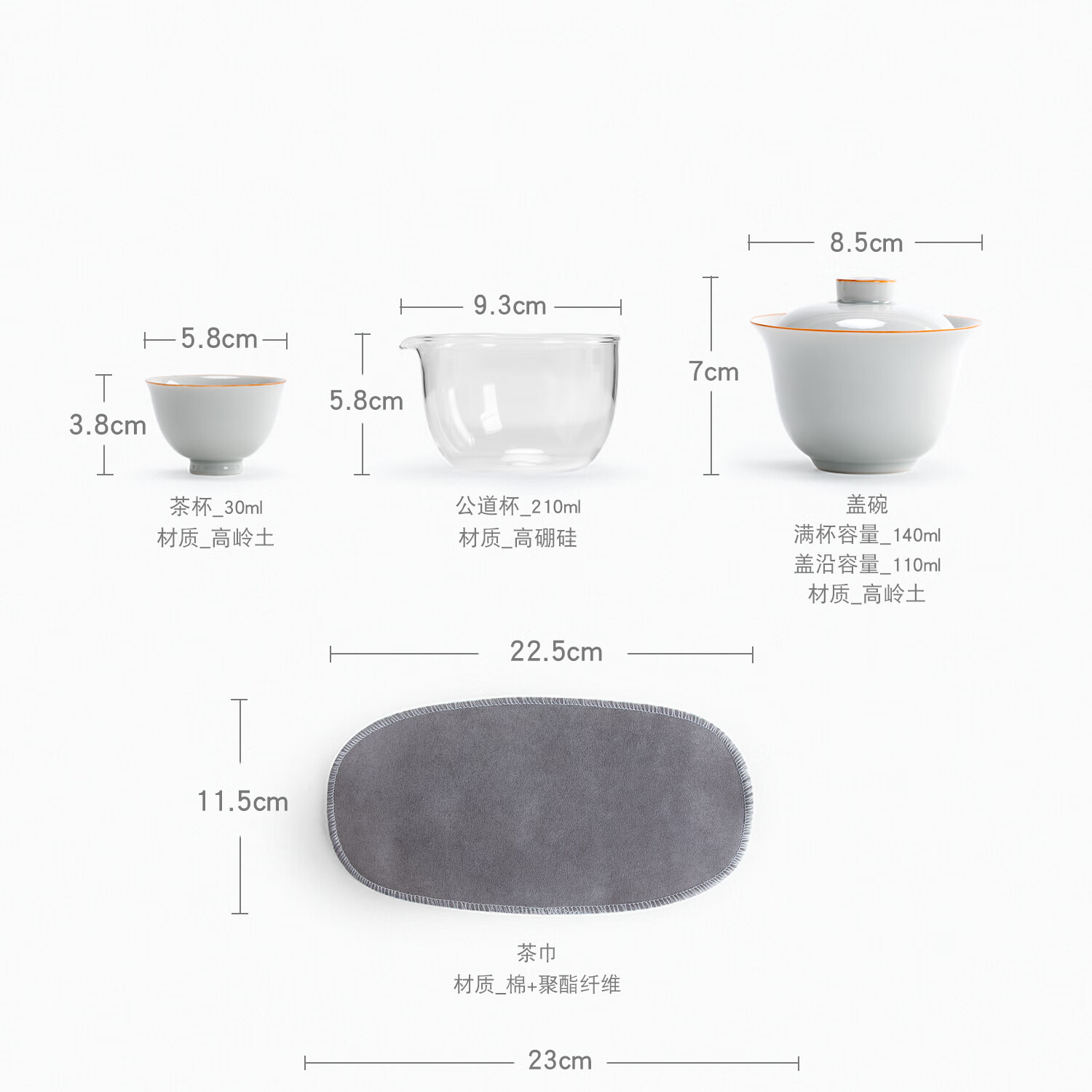 配置清单:盖碗*1、茶杯*4、公道杯*1、茶巾*1、茶盒*1、礼盒礼袋*1