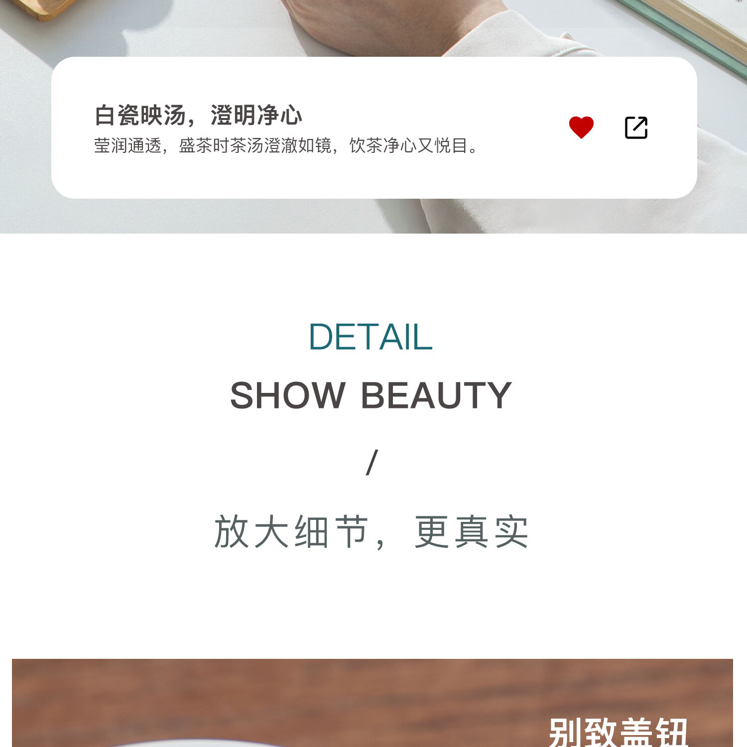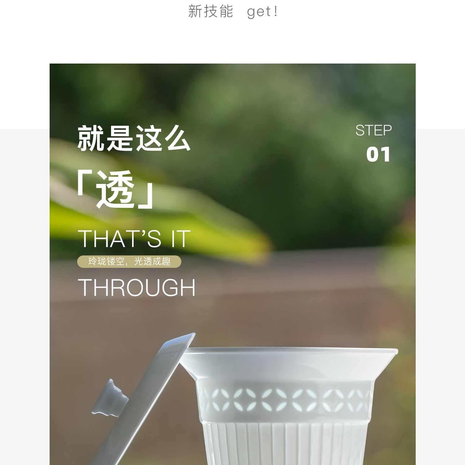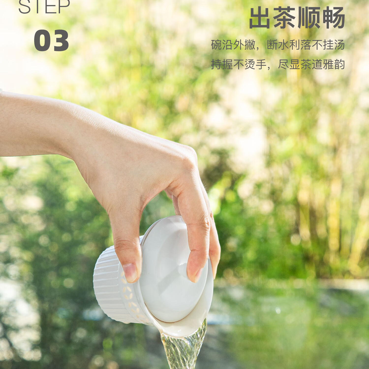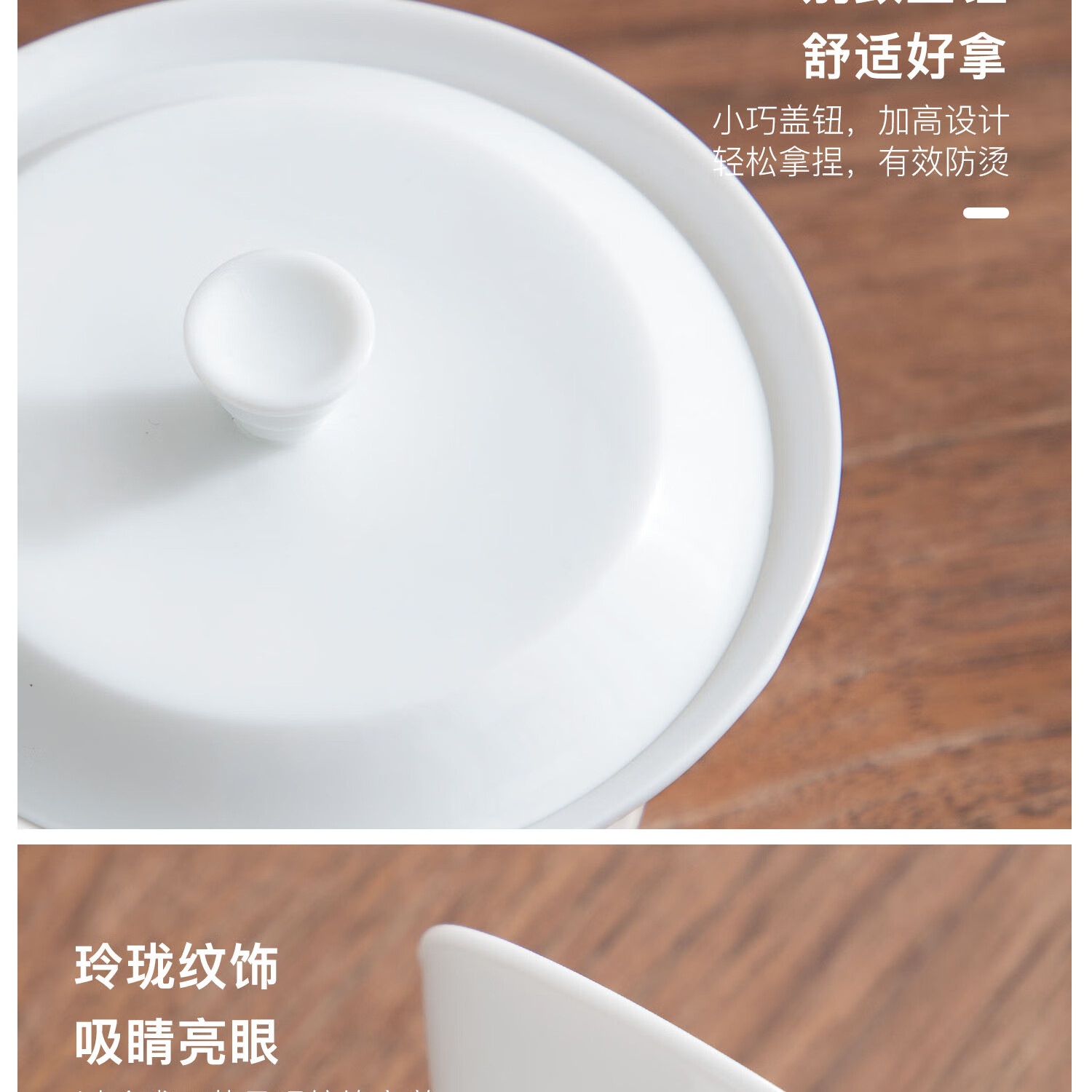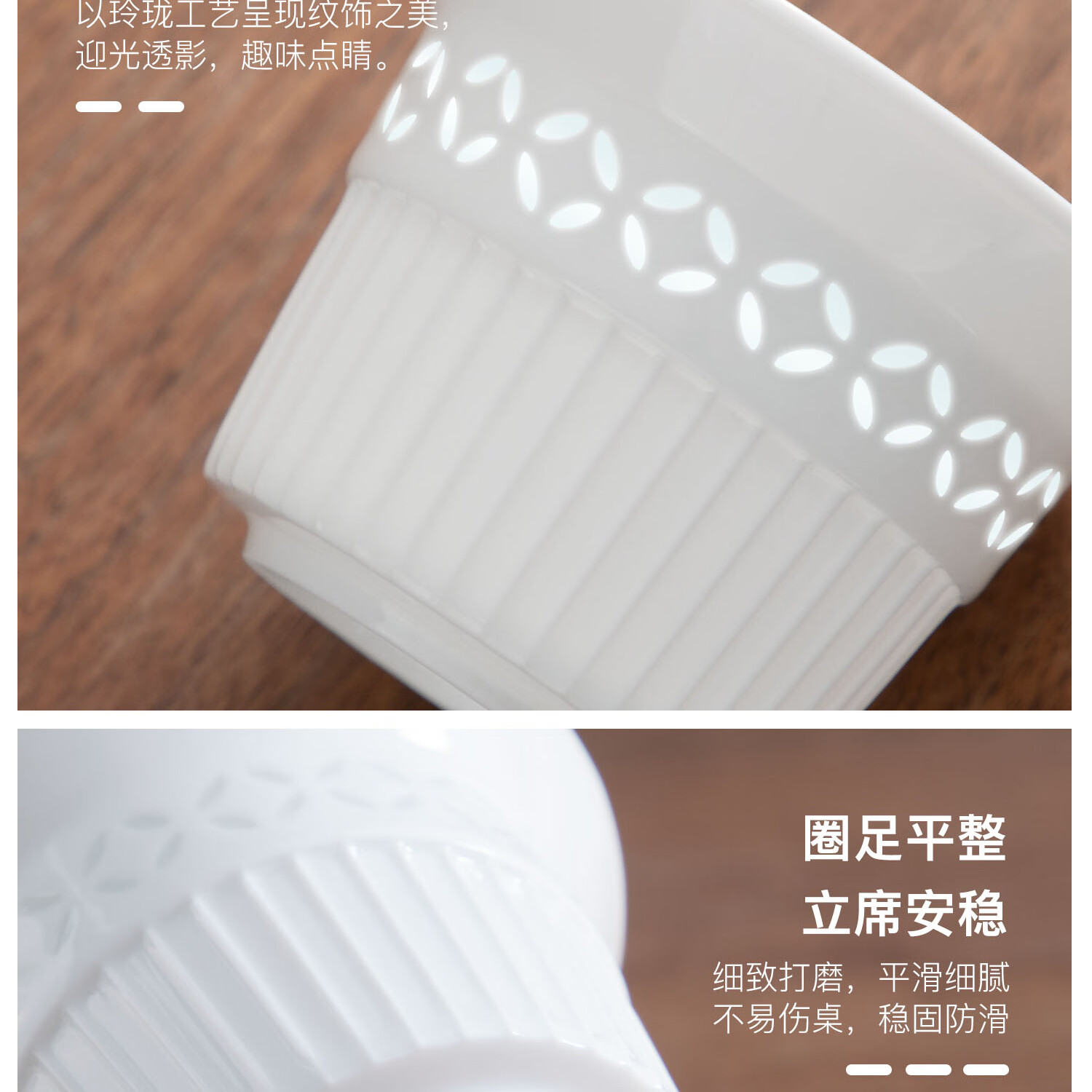 玲珑瓷韵,迎光透影;适泡百茶 莹润瓷质,不吸茶性;碗沿外撇,断水利落不挂汤 持握不烫手,尽显茶道雅韵