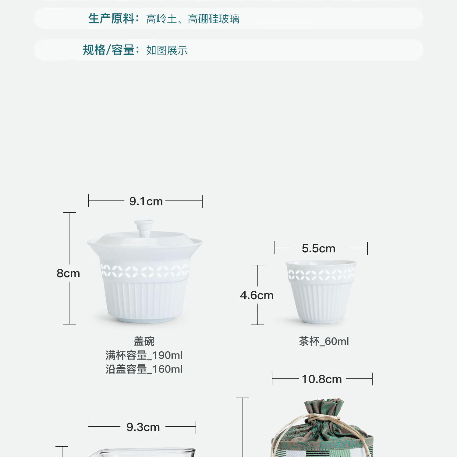 配置清单:茶壶*1,玻璃公道*1,茶杯*2,布包*1