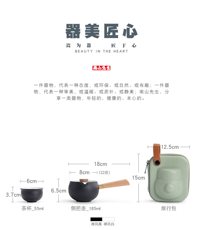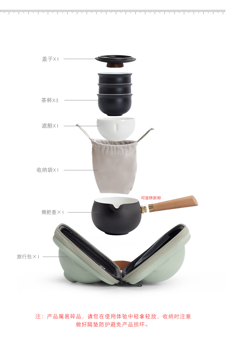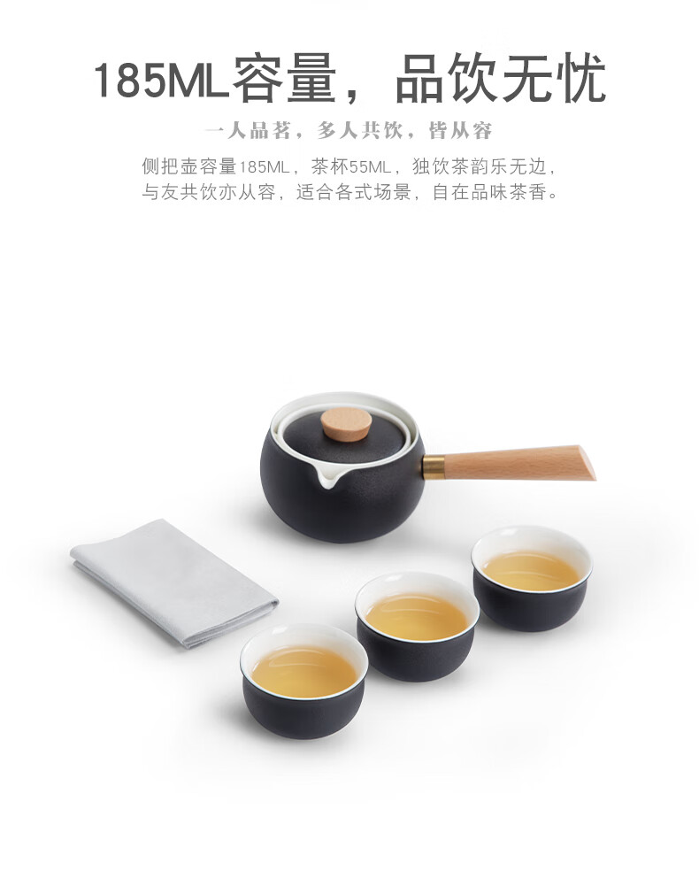 配置清单:侧把壶*1、茶杯*3、茶巾*1、旅行包*1、礼盒礼袋*1