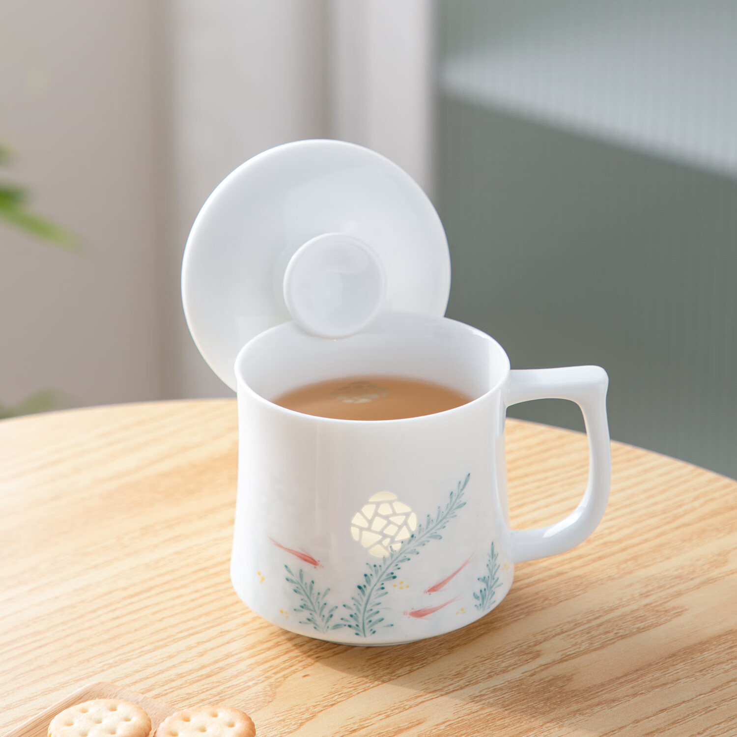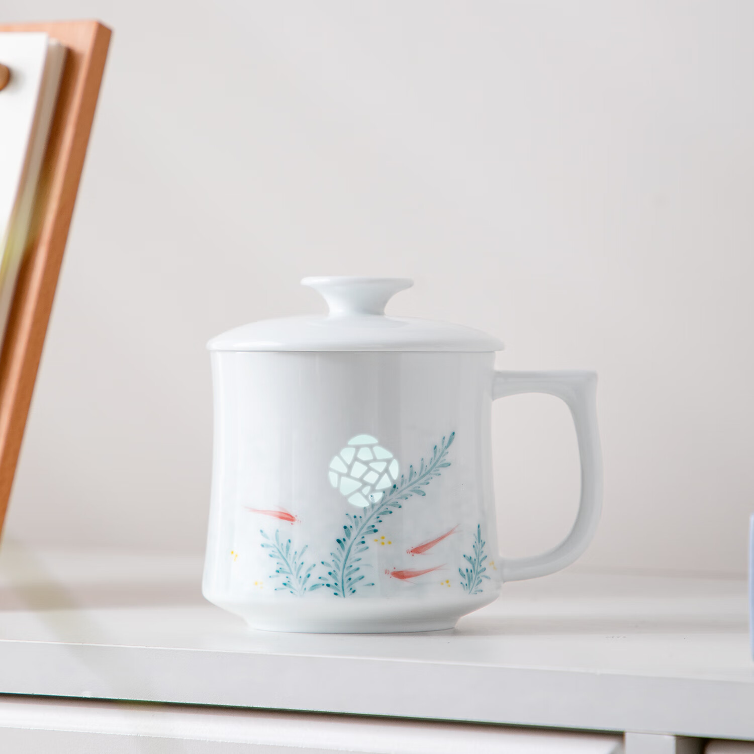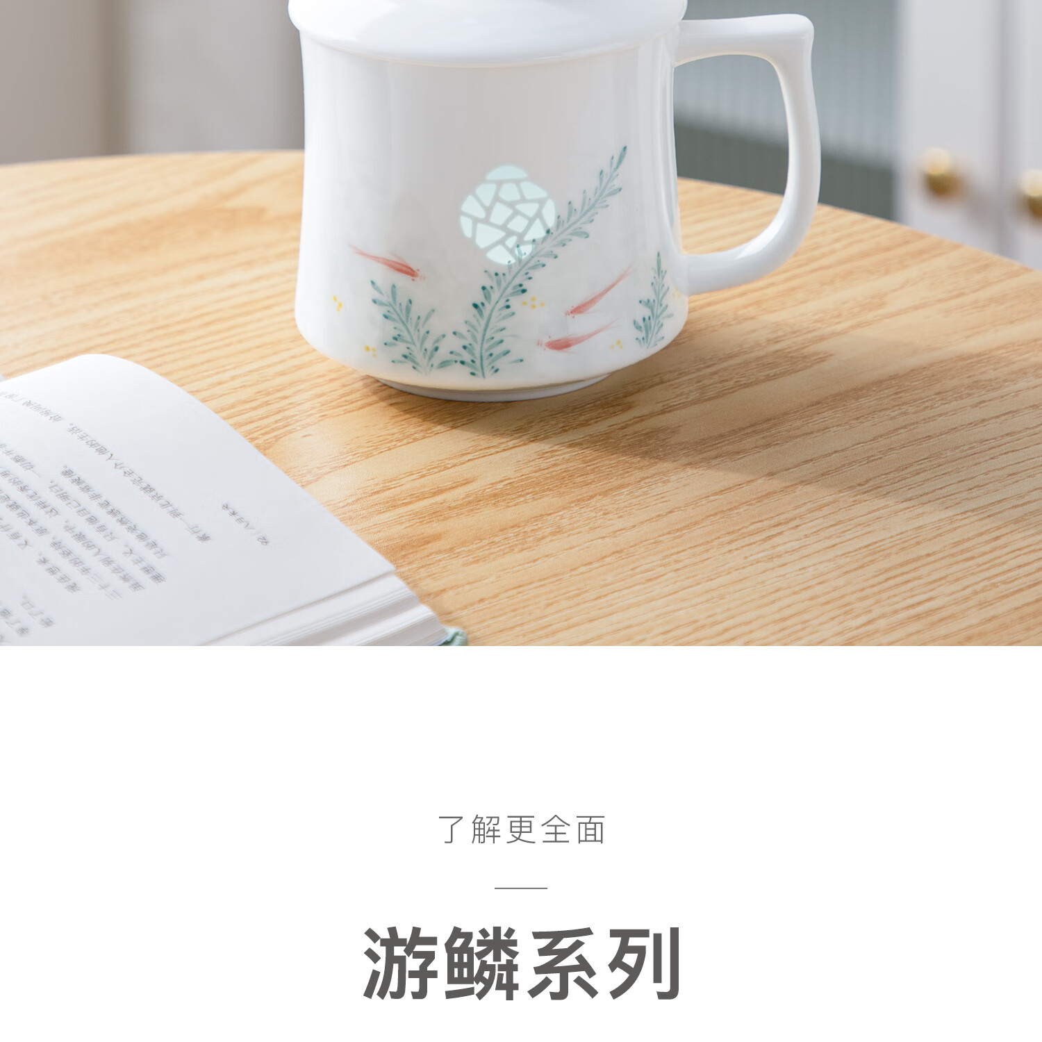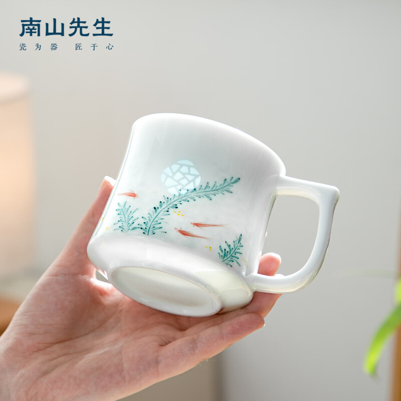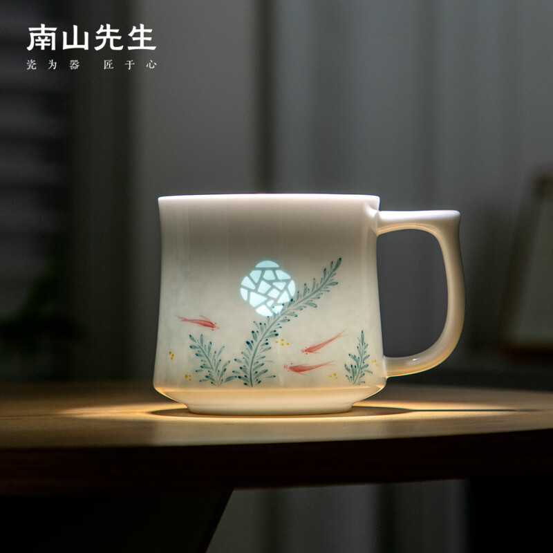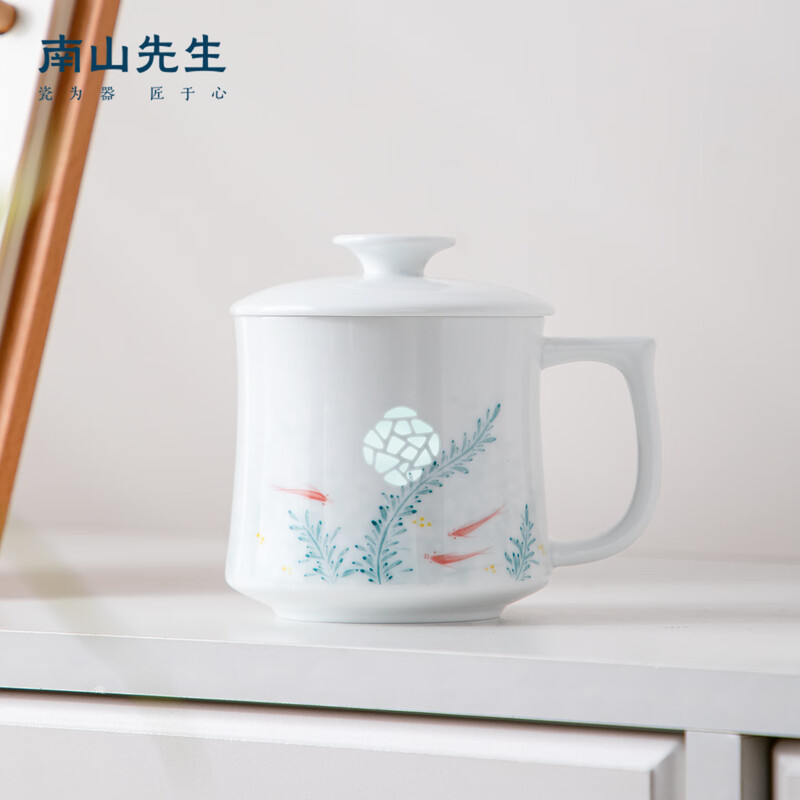 南山先生 创意中式手绘带盖马克杯玲珑陶瓷