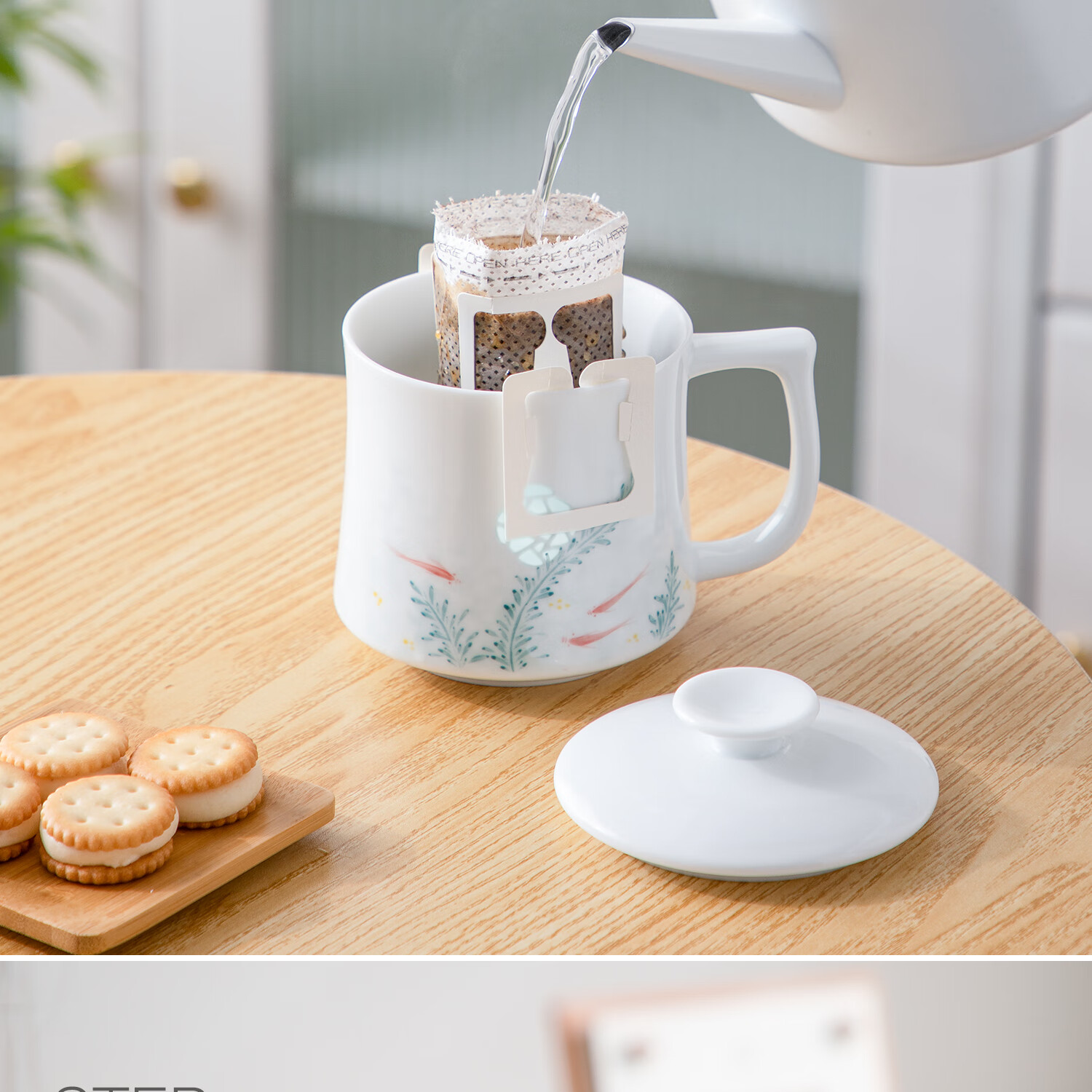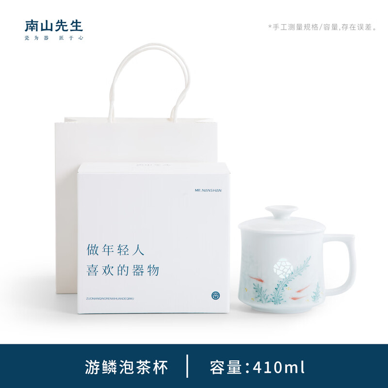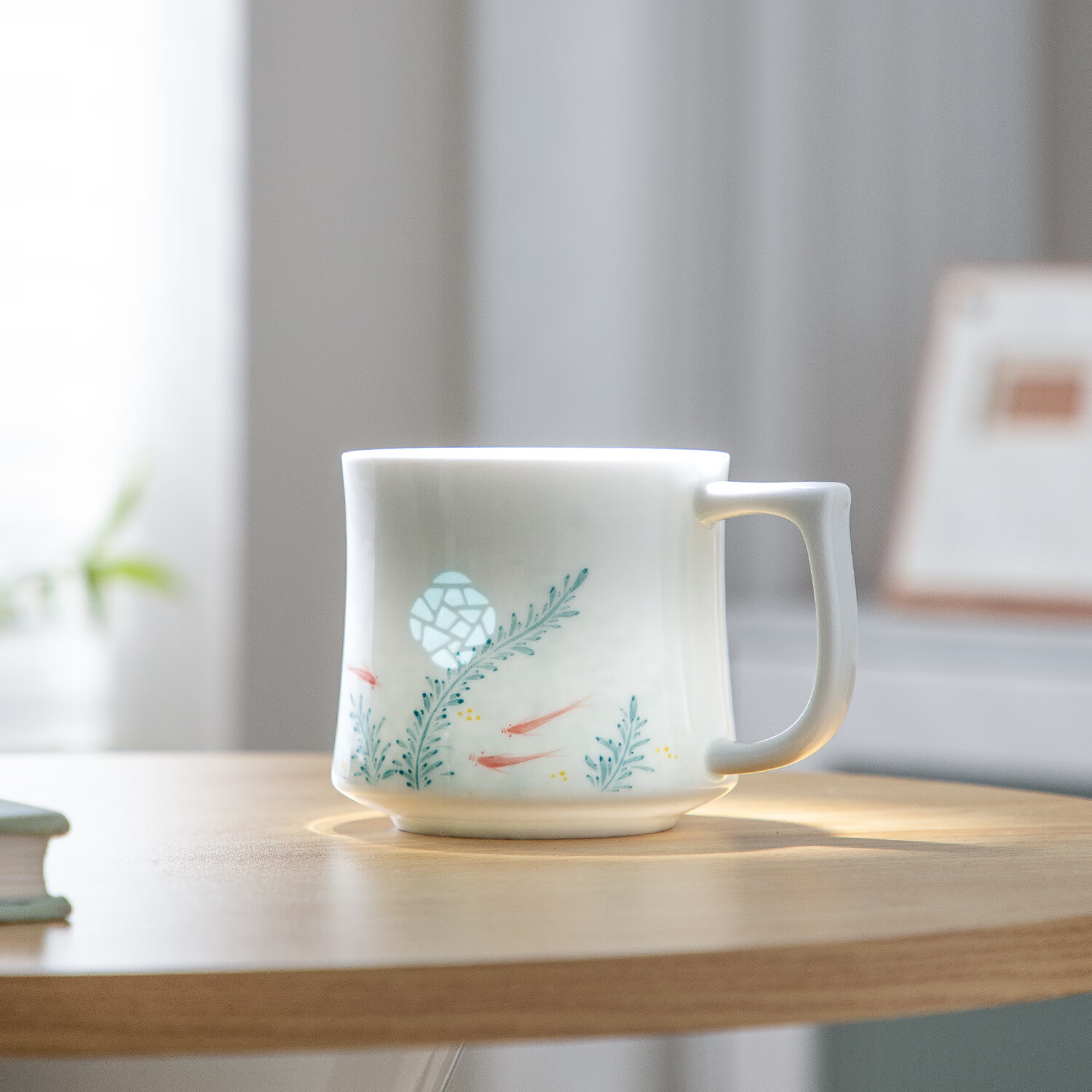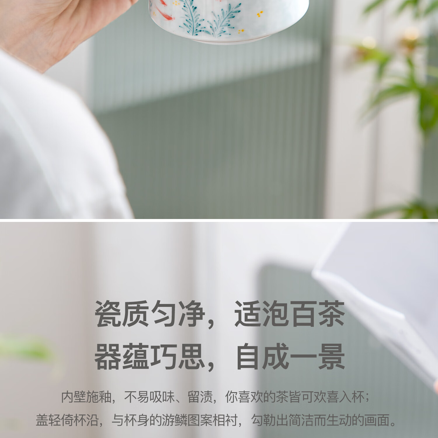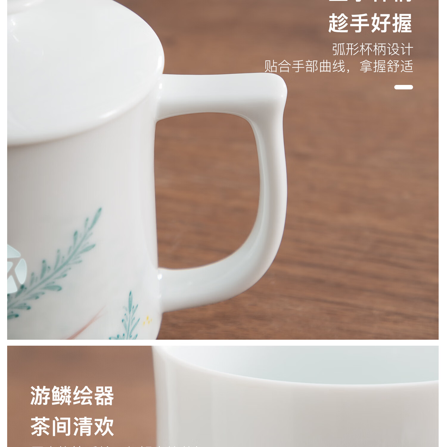 南山先生 创意中式手绘带盖马克杯玲珑陶瓷