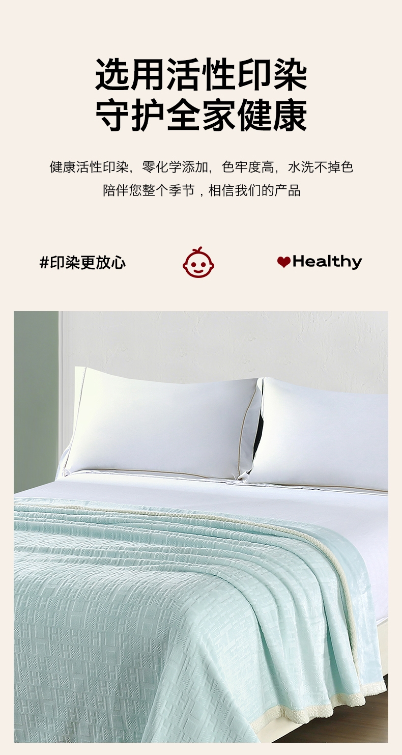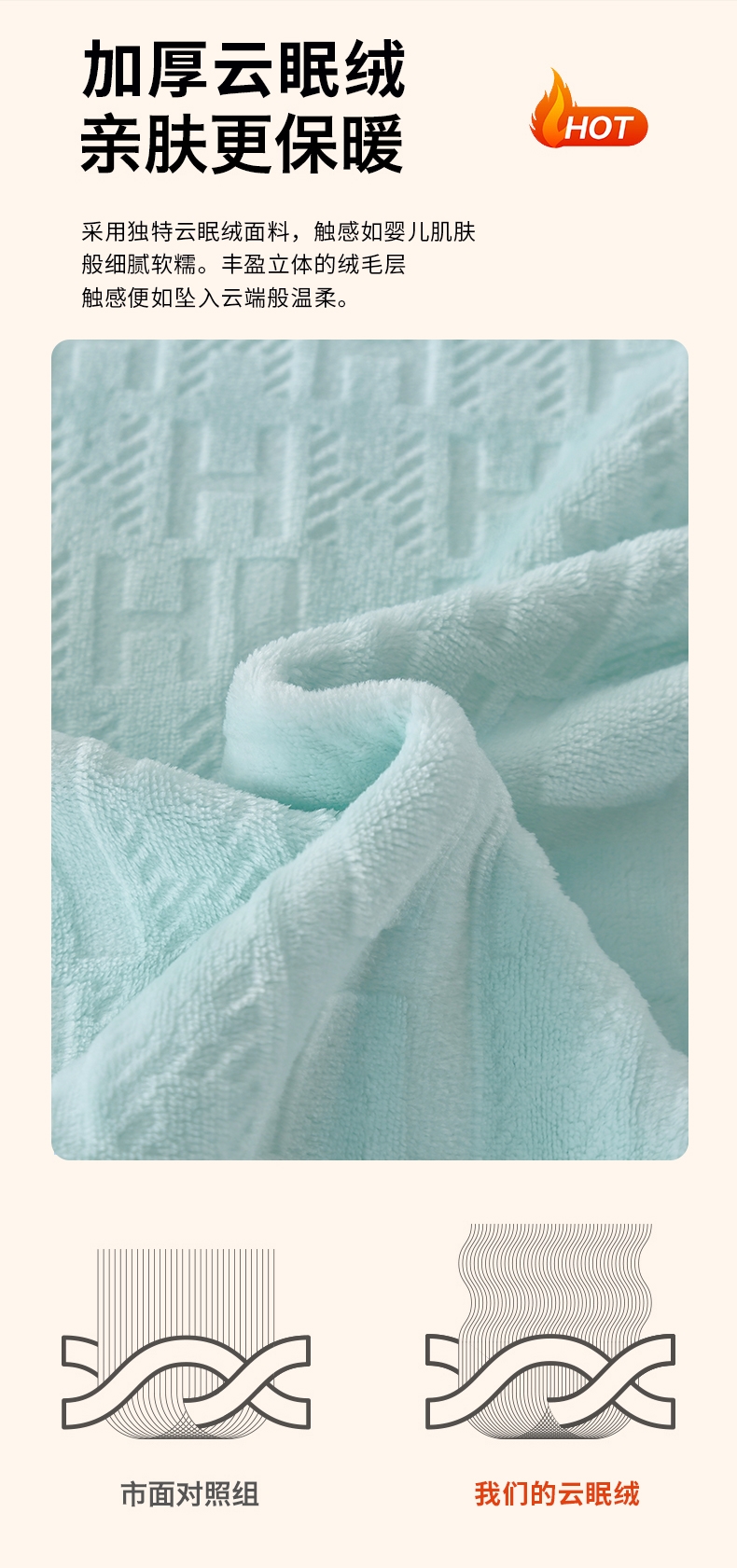 采用独特云眠绒面料,触感如婴儿肌肤般细腻软糯;毯身蓬松轻盈却拥有恰到好处的垂坠感;绒毛经过抗静电处理,久用仍保持蓬松柔软,不易起球