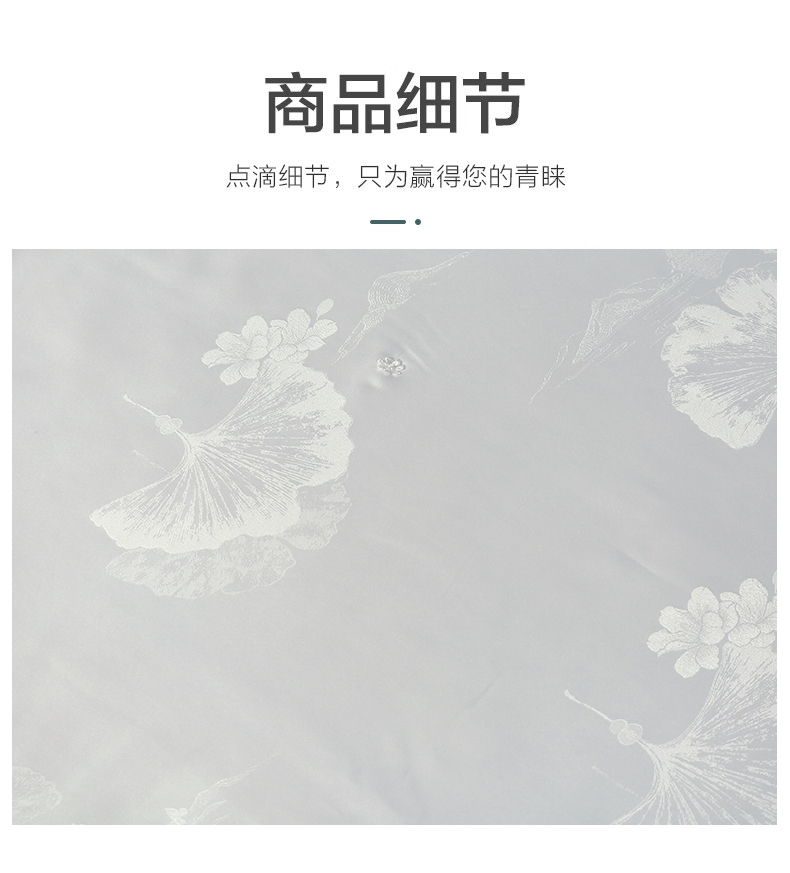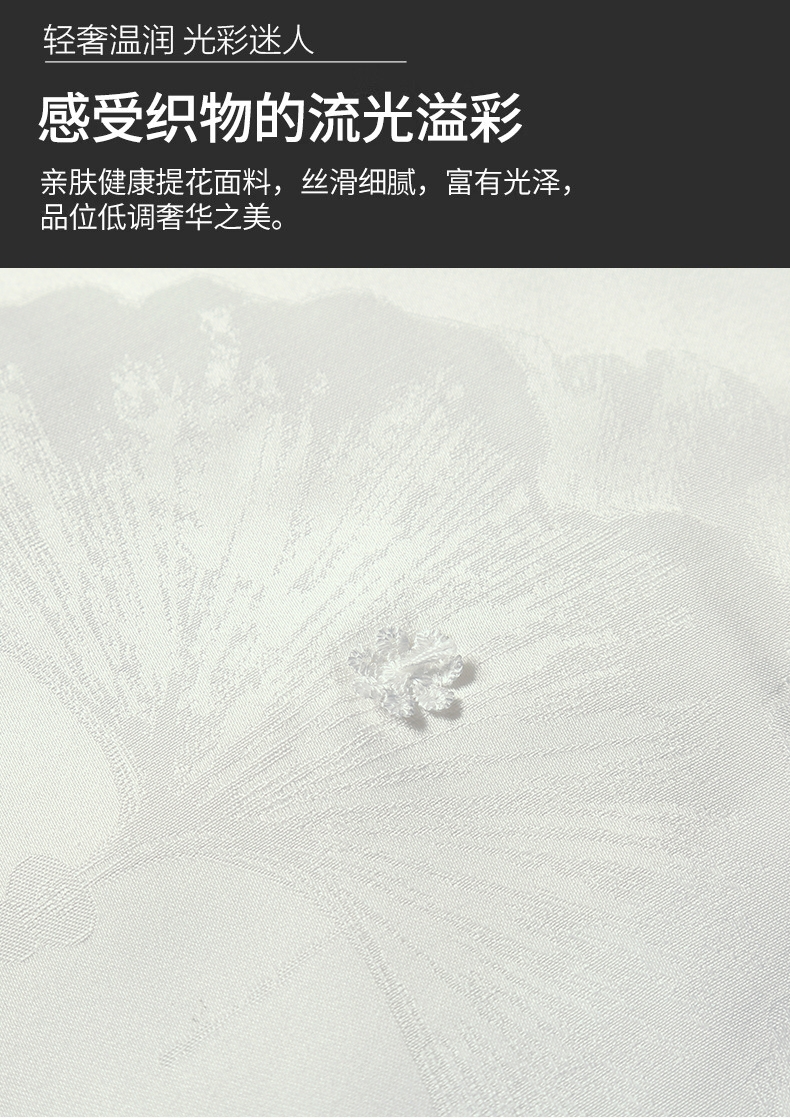 面料手感柔软如贴身内衣,睡感舒适,透气;有蚕丝的柔软与丝的冰滑,灵感加持;面料缩水率低,色牢度高,经洗耐用
