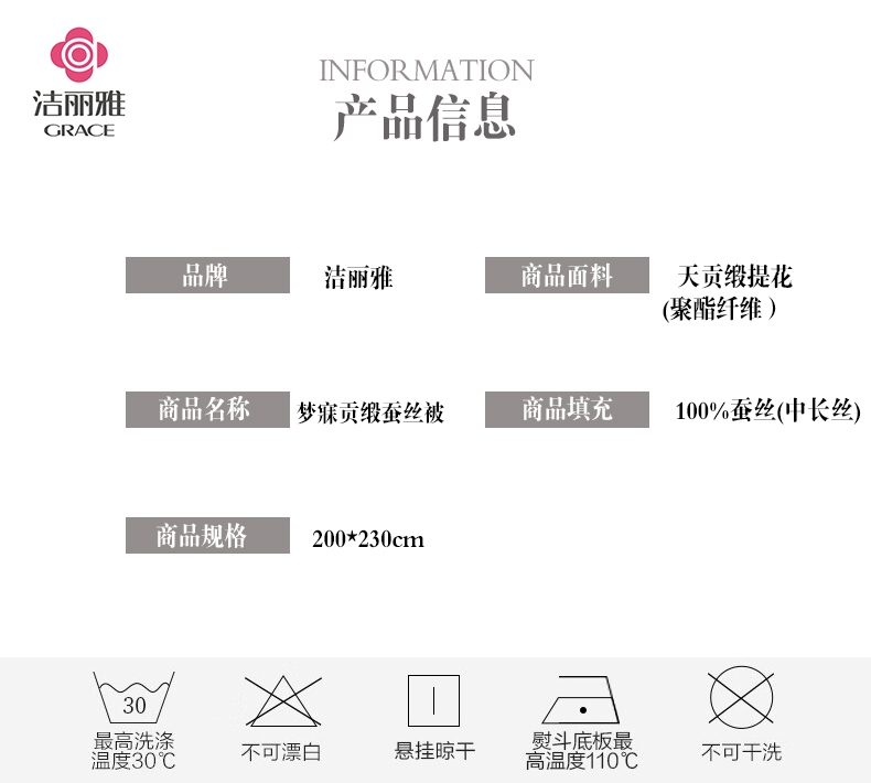 洁丽雅 梦寐贡缎蚕丝被JLY-D2018