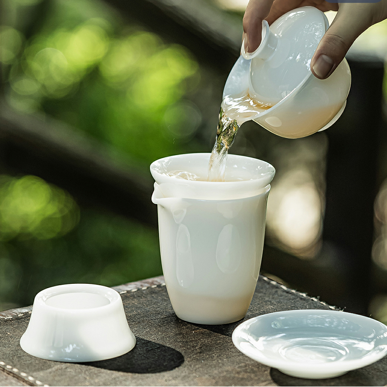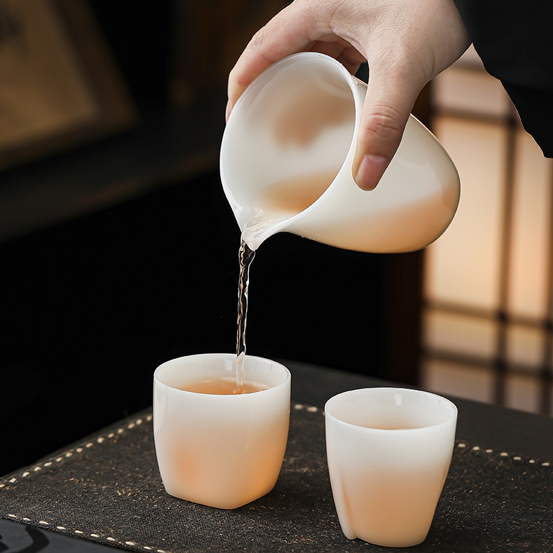 原矿稀有瓷土,高纯度釉水,高温烧制,打造优质典范。;自然光下淡淡暖黄色光韵,折射出琉璃质感,温润如暖玉;入茶后呈现琥珀、金红光影,简约种满满的高级感。;璞玉瓷特性:杯壁透光见影,极具韵味。;产品圈足打磨平整光滑,细节满满。
