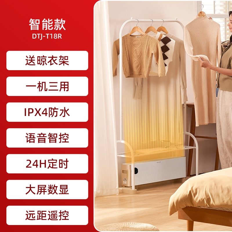 特设两种模式 烘干+取暖;IPX4级防水,居浴两用;大烘衣架设计取暖烘衣两不误