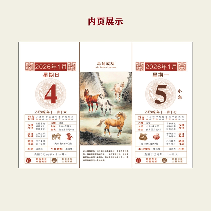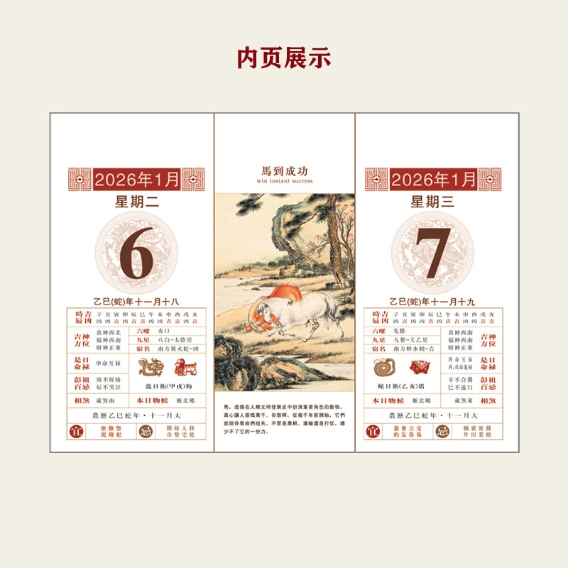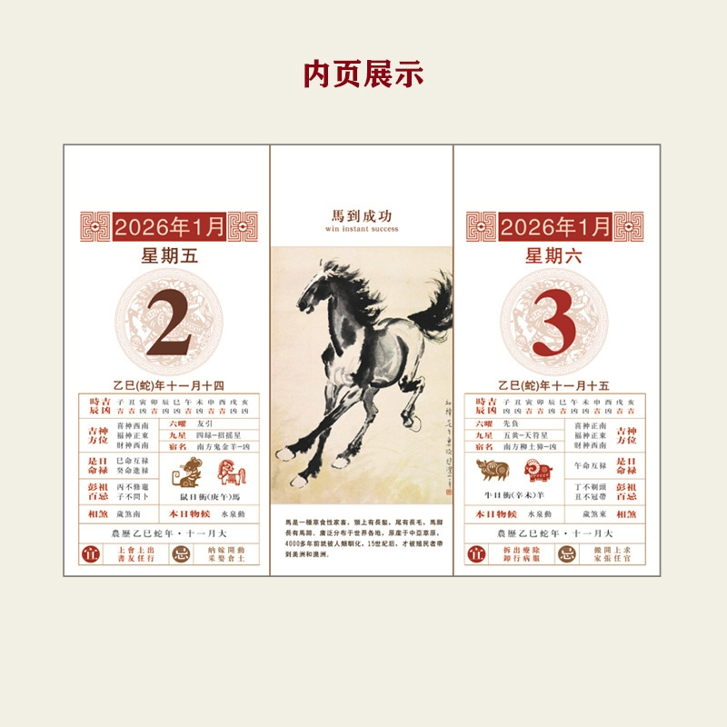 马年九开金雕压纹工艺双日撕历YC8001/YC8002