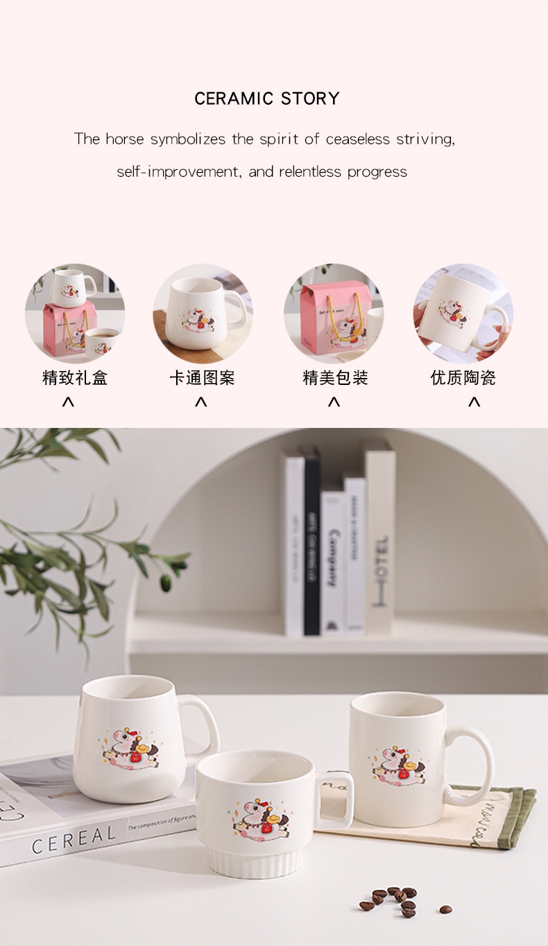优质陶瓷,方便清洗;精美卡通图案;精致礼盒包装