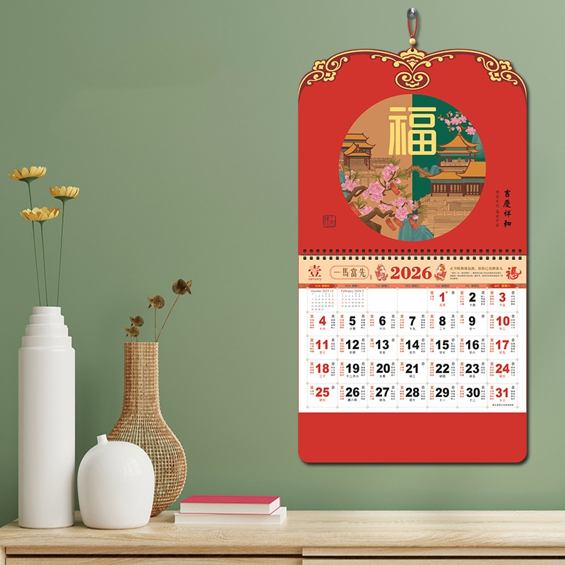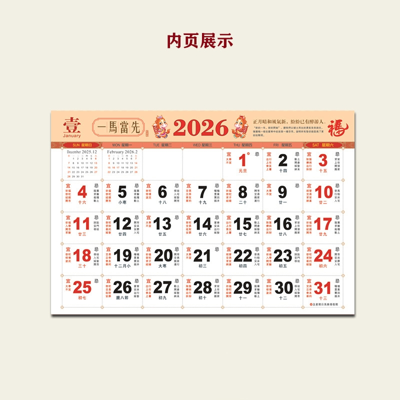 马年大六开种纸金雕压纹福历吊牌 YC8013