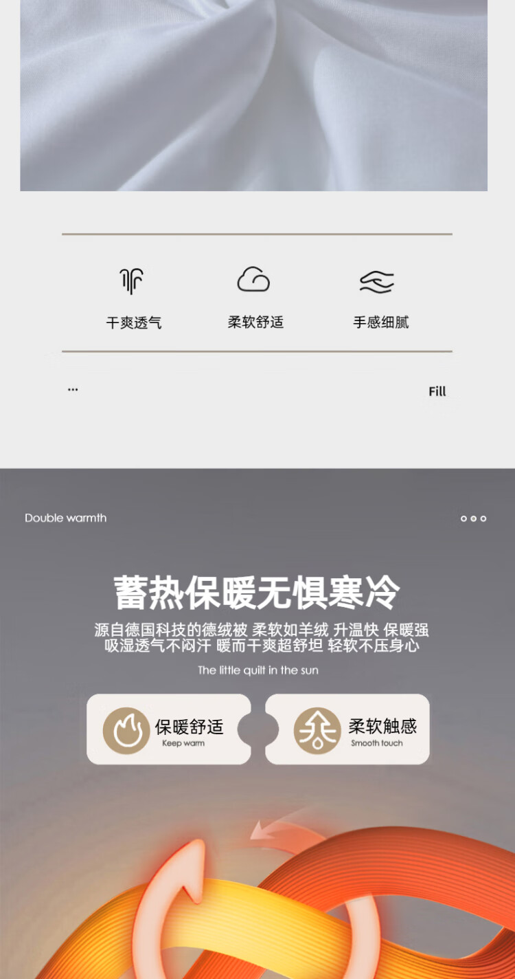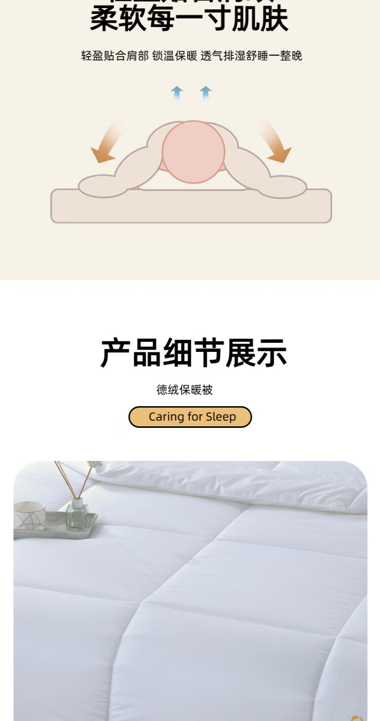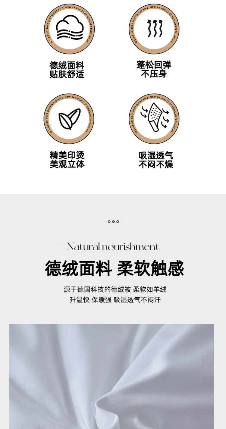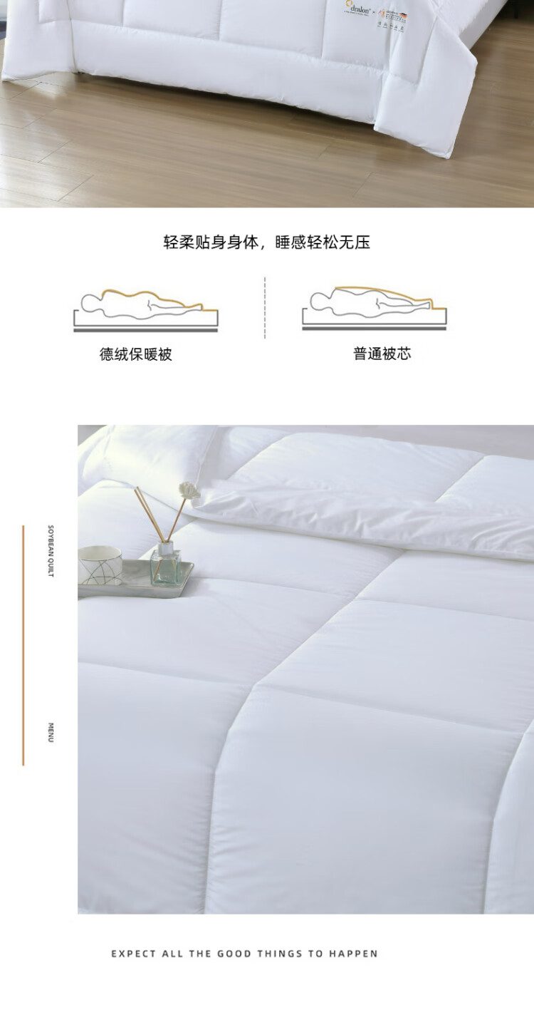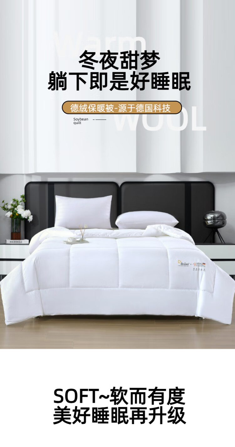 源自德国科技的德绒被,柔软如羊绒;升温快,保暖强,吸湿透气不闷汗,暖而干爽超舒坦;轻软不压身 。德绒入被,暖力开挂;一床锁住冬日所有温暖