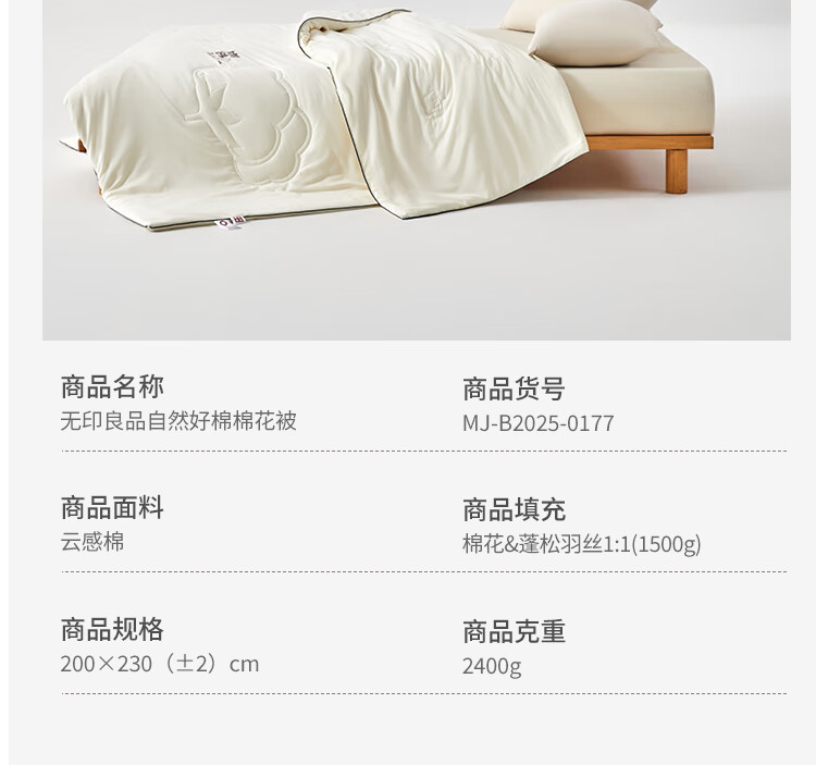 無印良品 无印自然好棉棉花被MJ-B2025-0177
