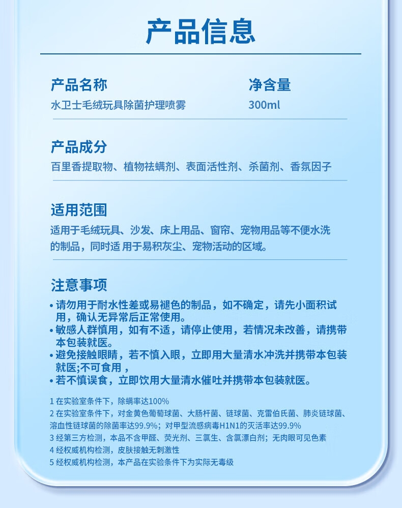配置清单:水卫士毛绒玩具除菌护理喷雾300ml*1