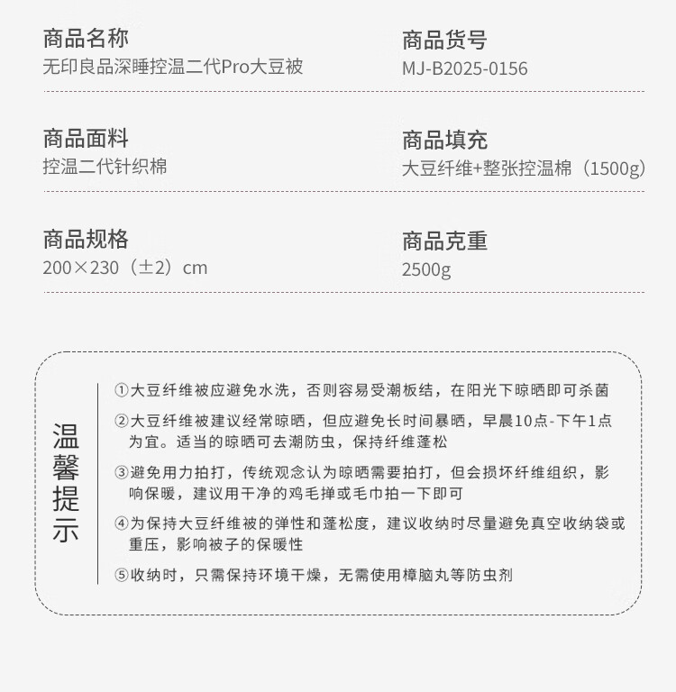 無印良品 无印深睡控温二代Pro大豆被MJ-B2025-0156
