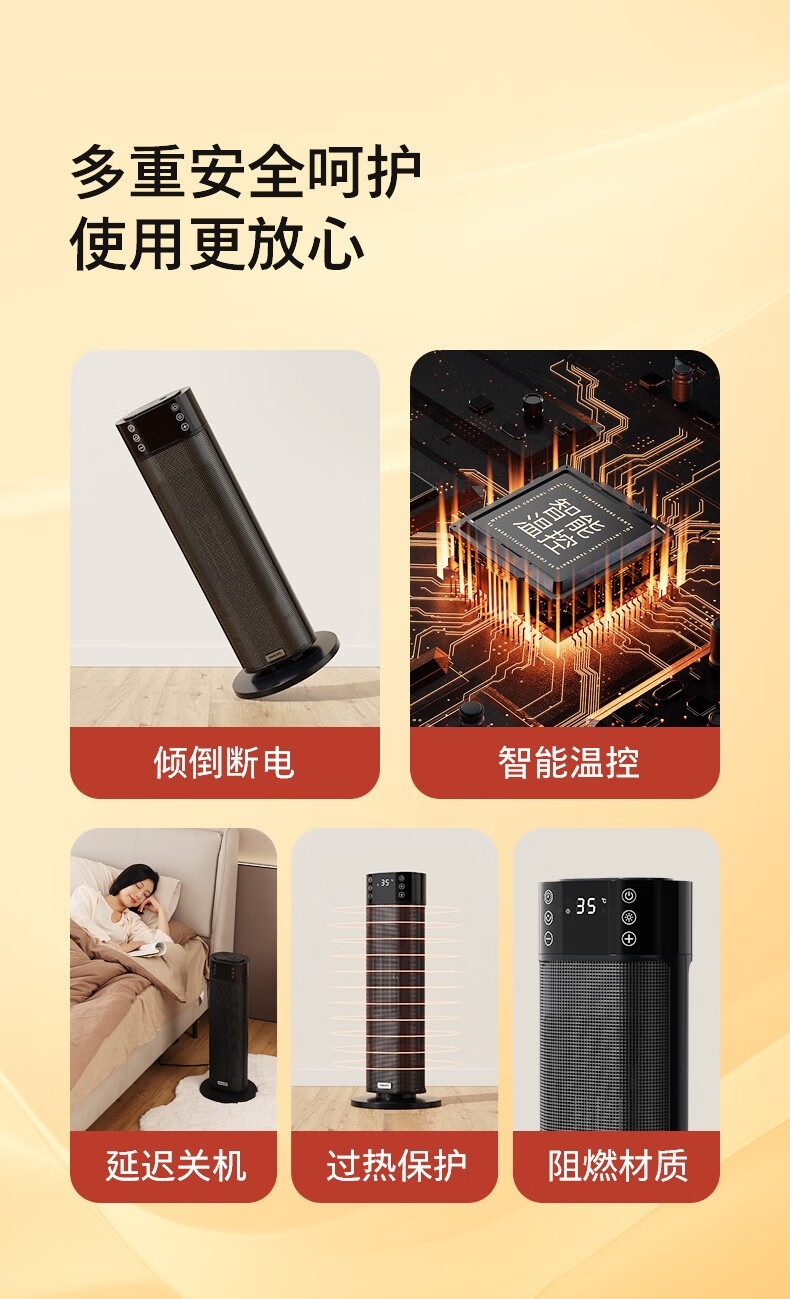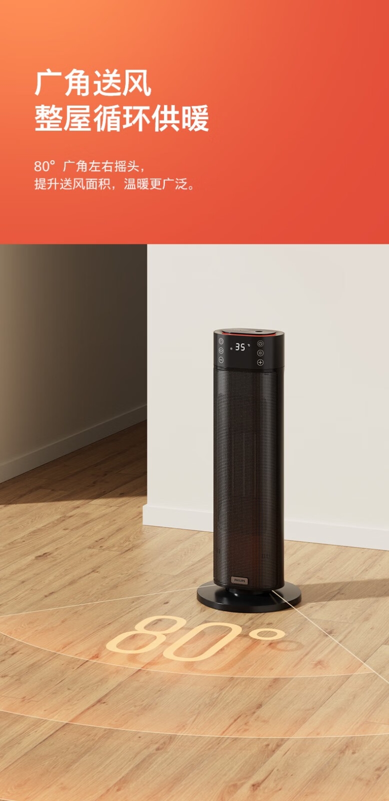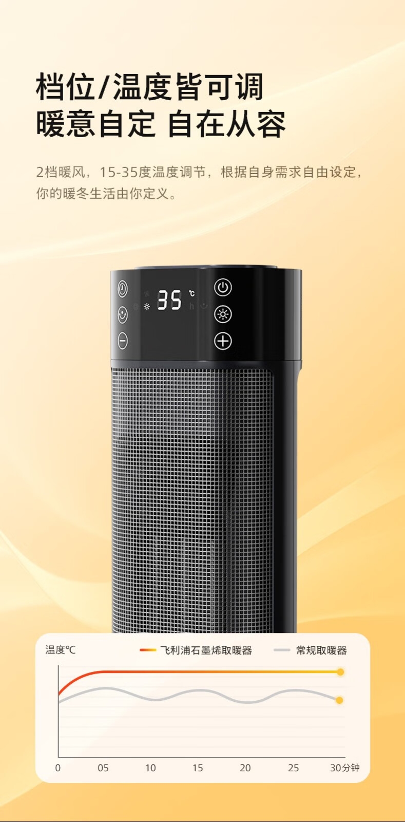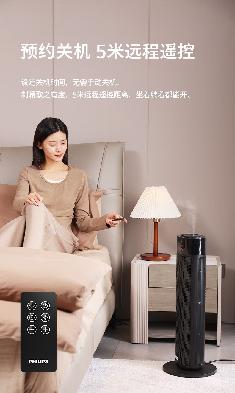 大风量,快速升温,解锁冬日取暖新体验;顶部细密雾化加湿温润暖冬 肌肤不干燥;独立水箱 满水可用8h;石墨烯速热陶瓷发热体快速制热