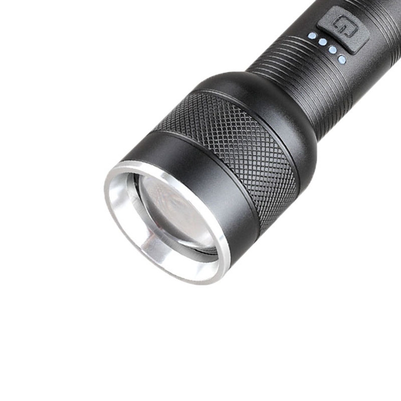 强光--中光--弱光;长按开关开启SOS闪光任意档位停留三秒按下关闭电量;大功率强光手电、USB直充、拆卸电池IPX3
