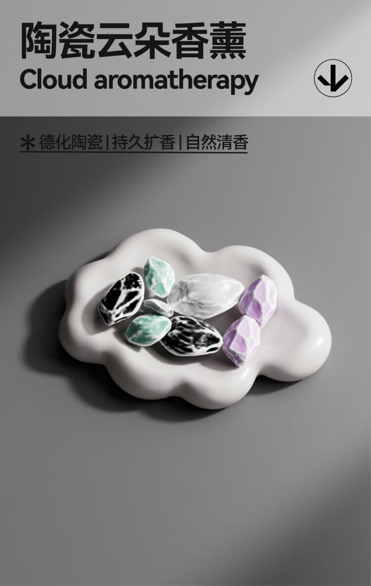 316不锈钢与轻量设计;搭配晶石香薰套装 ,天然晶石浸润香氛;于云朵造型底座上氤氲流转,如云端漫步般舒缓身心