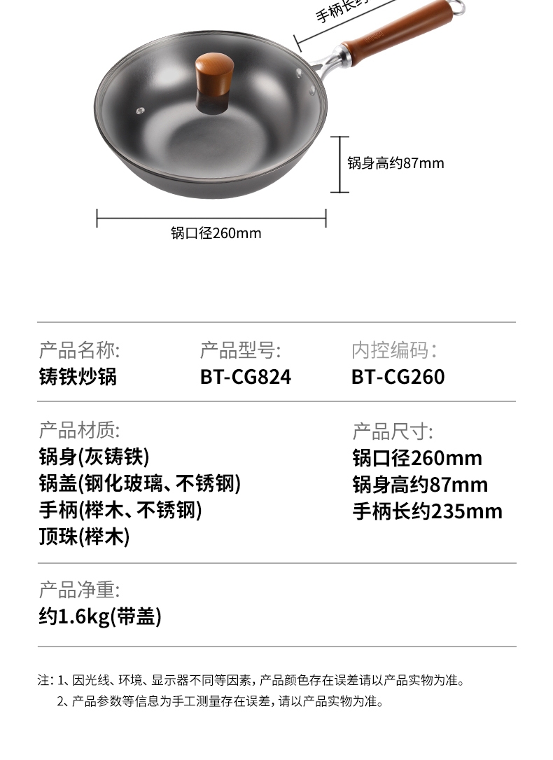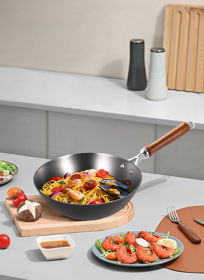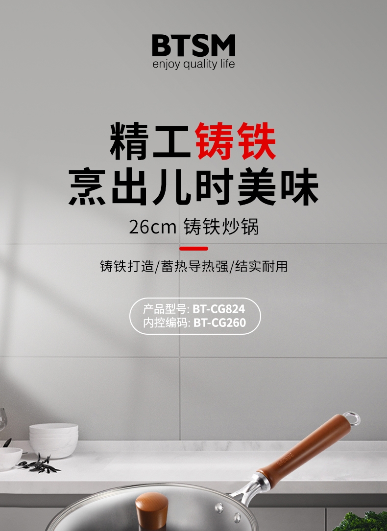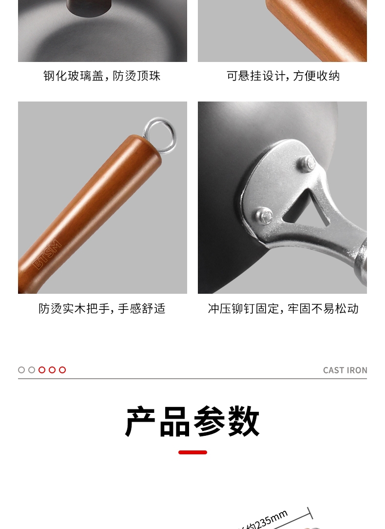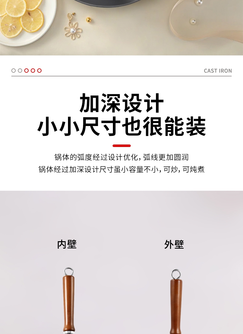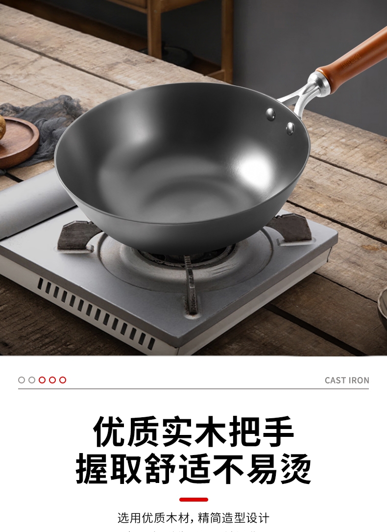 储热能力强:铸铁密度高,加热后能长时间保持高温;抗磨损性强:窒化处理后的的铸铁材质, 表面坚硬光滑;无化学涂层:天然材质不含PFOA等有害物质