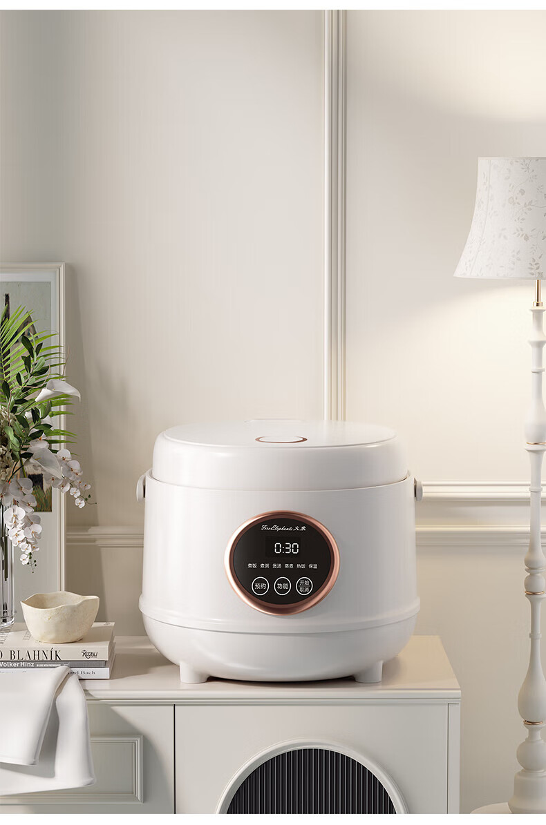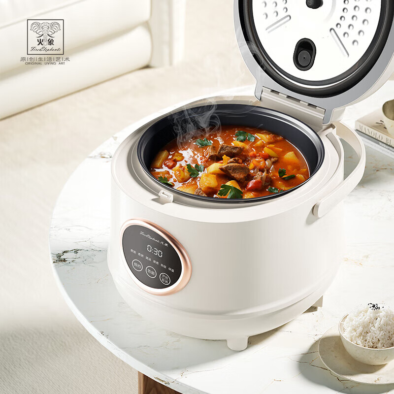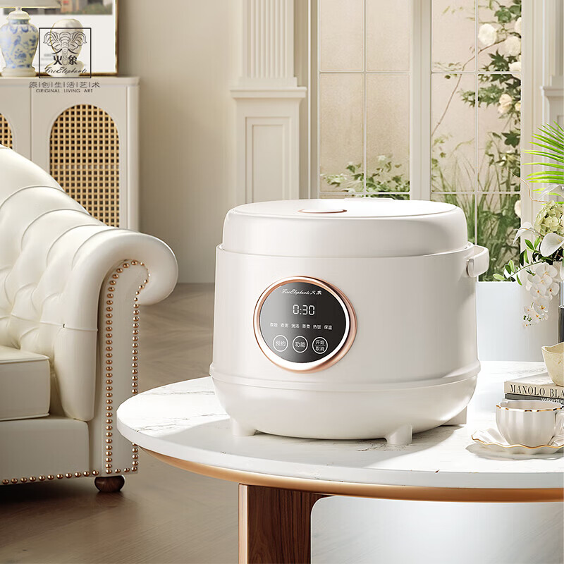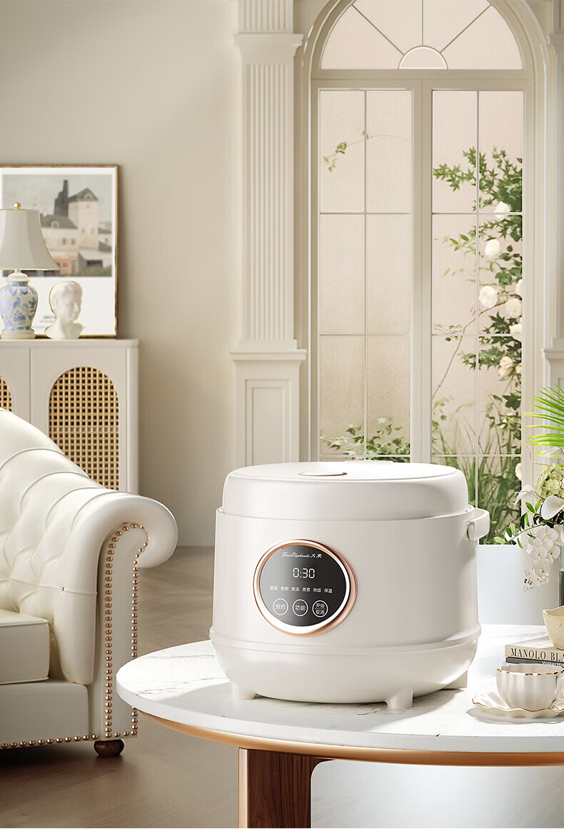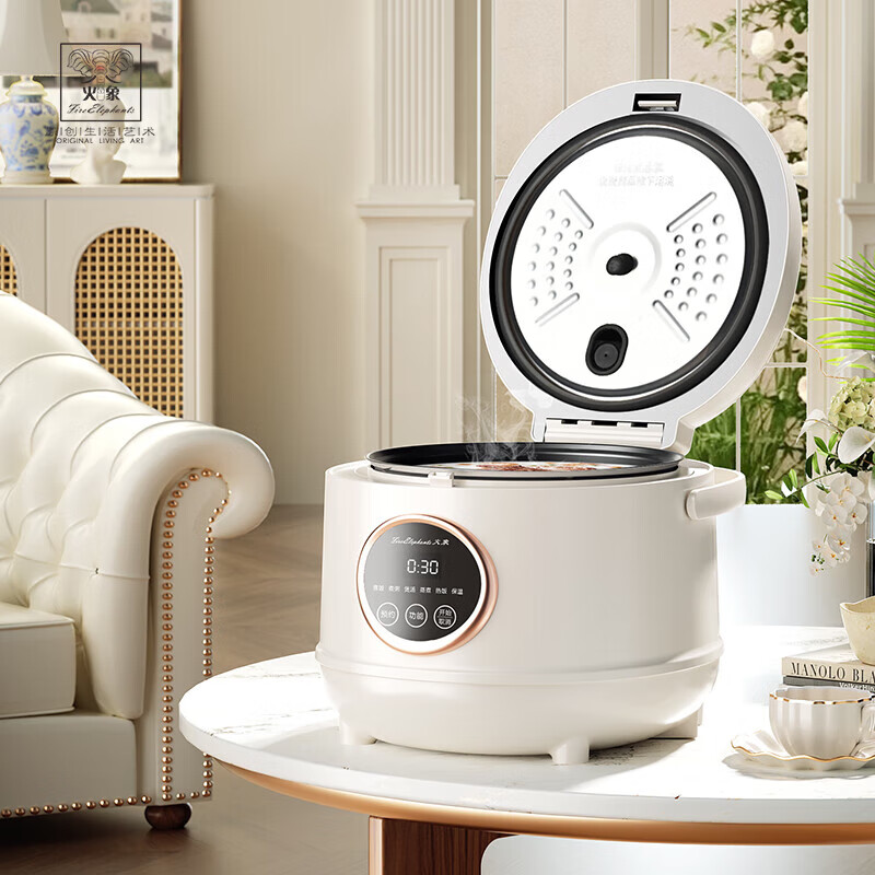 半圆提手设计,符合人体工学,轻松提拿;;轻触按键设计, . 微电脑控制,使用简单方便;;高密度发热盘,铝合金加厚内胆