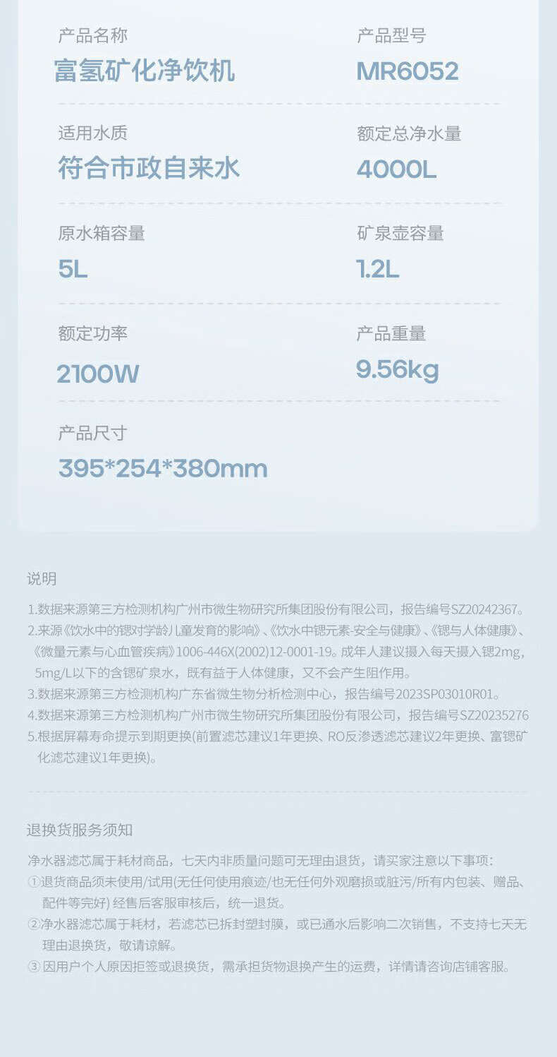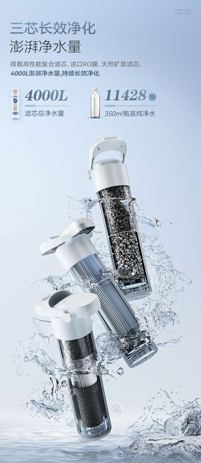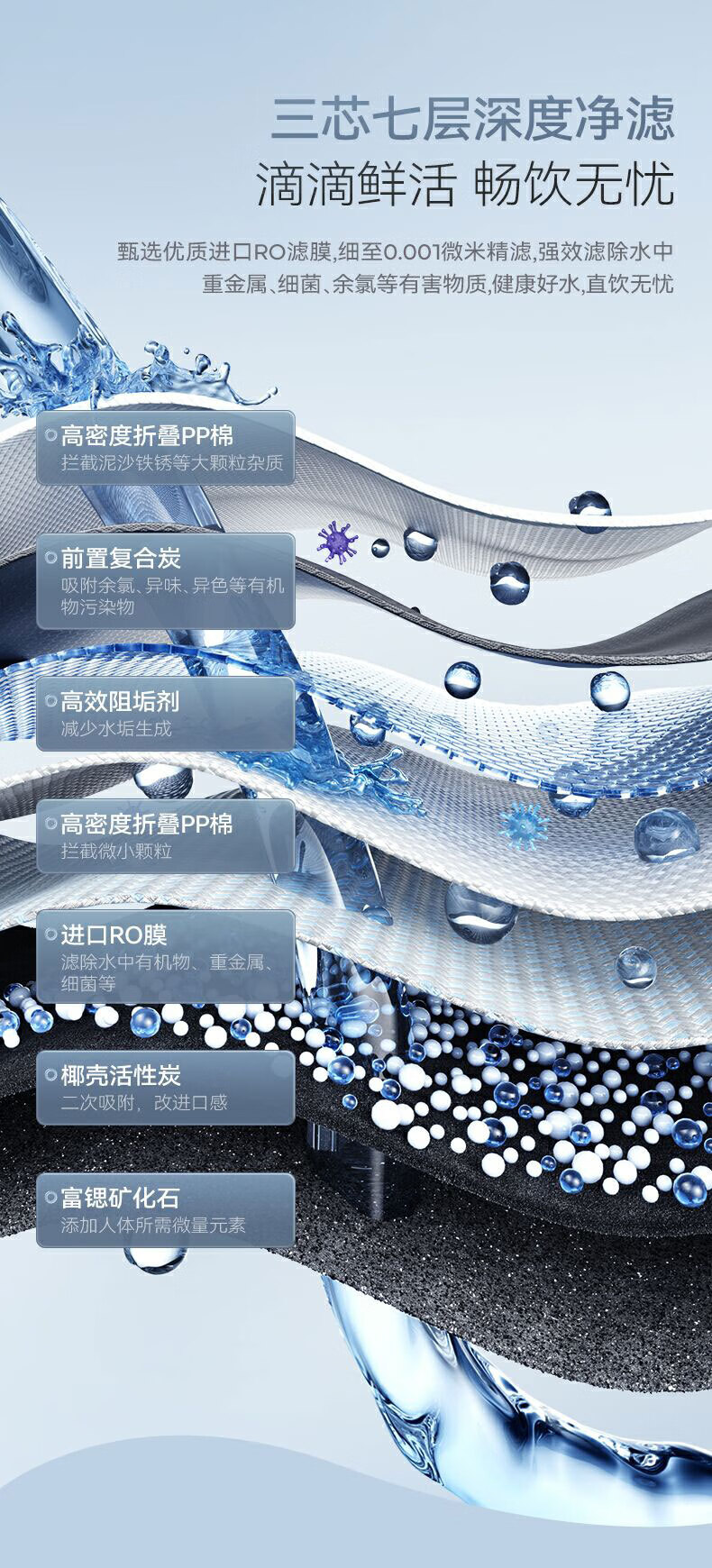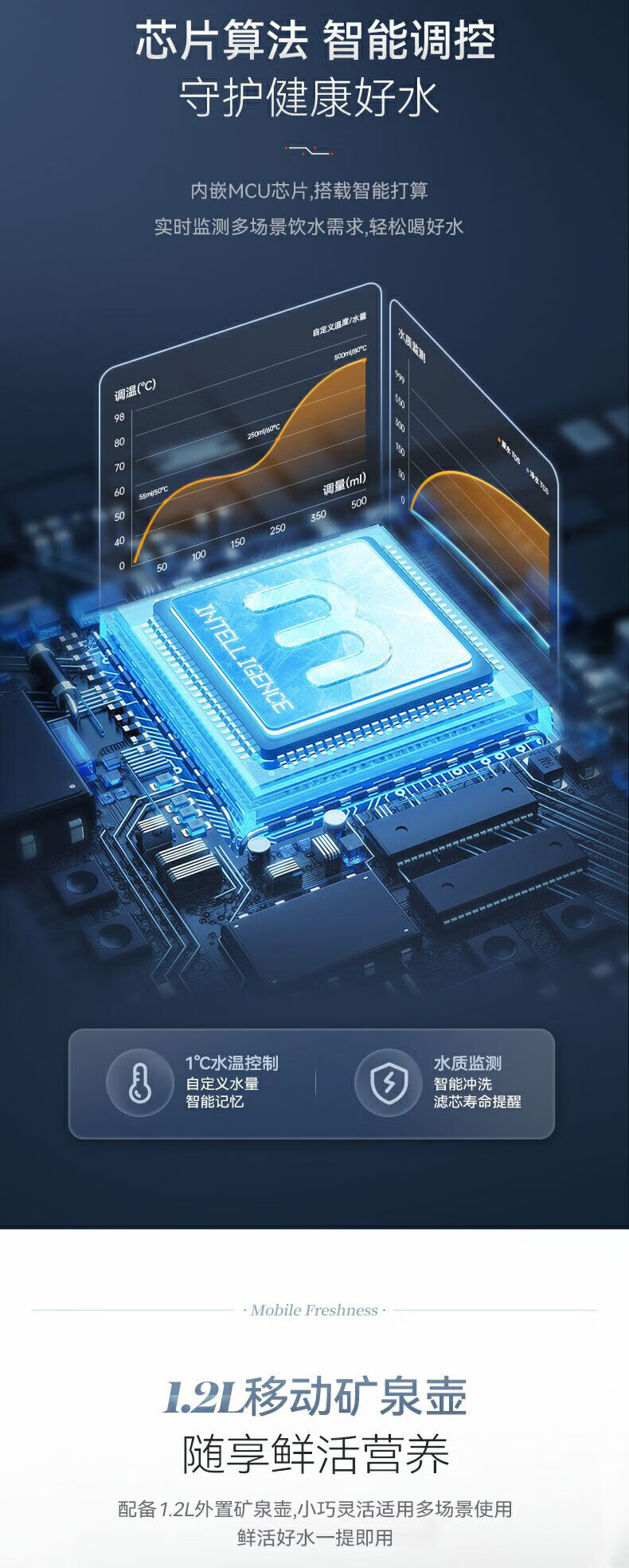 七重复合精滤,洁净畅饮活矿泉;AI定量定温出水,随时畅饮;甄选天然矿藏,补充稀缺营养