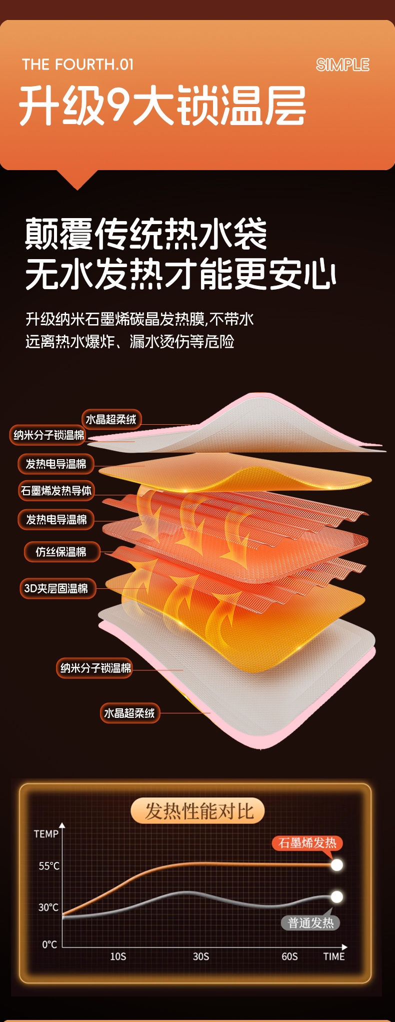 升级加长加大;双面石墨烯发热;5H长效保暖