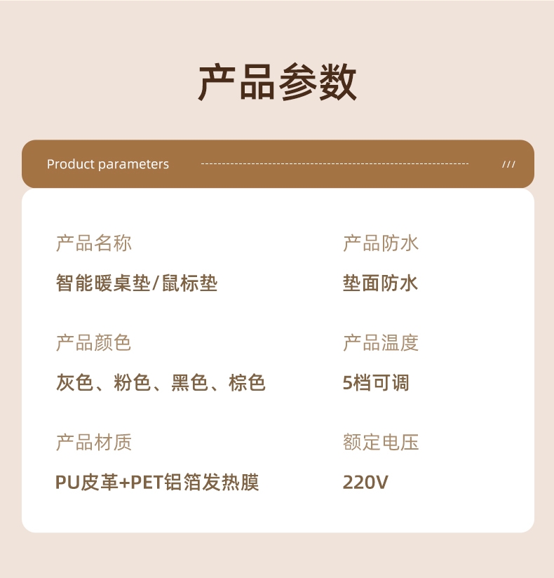 材质:PU皮革+PET铝箔发热膜