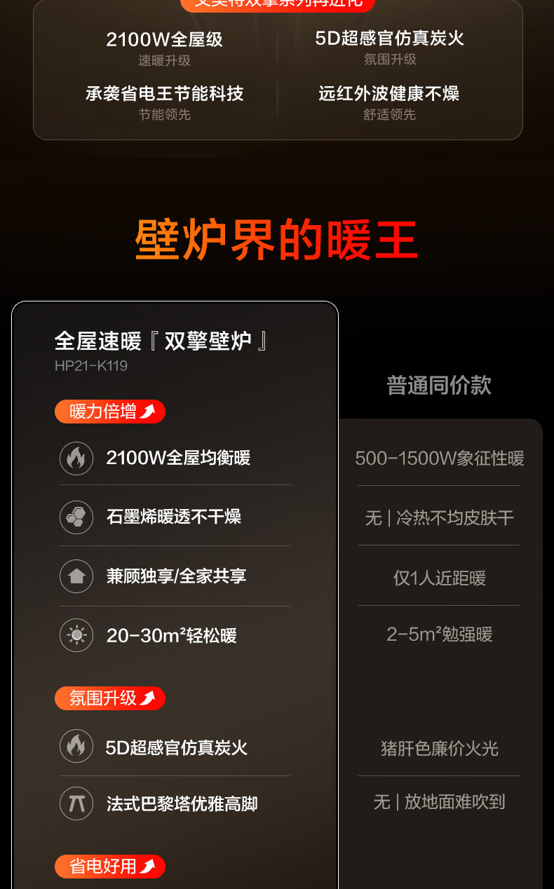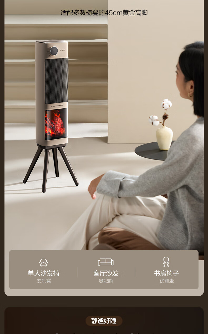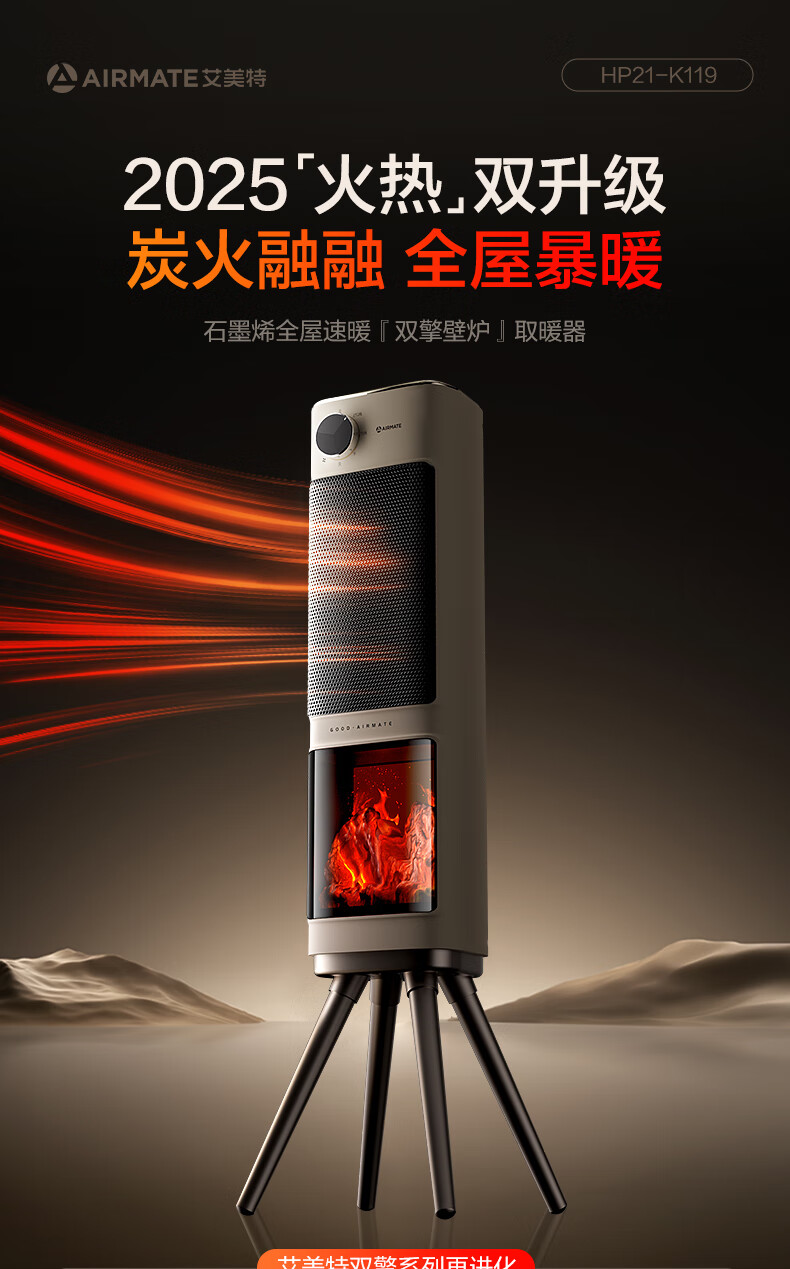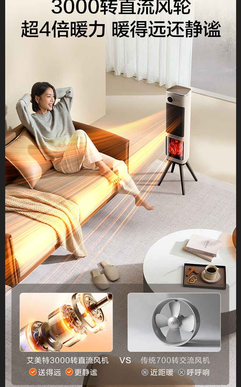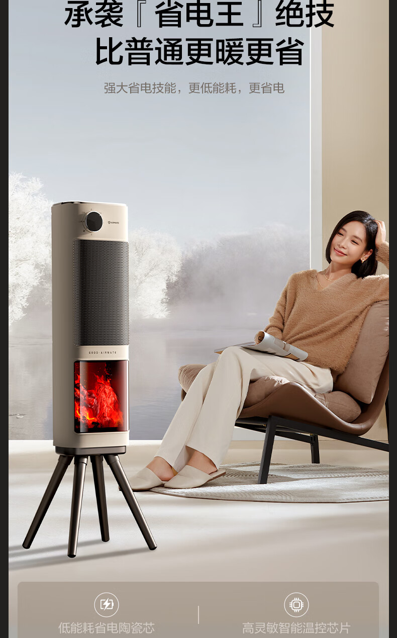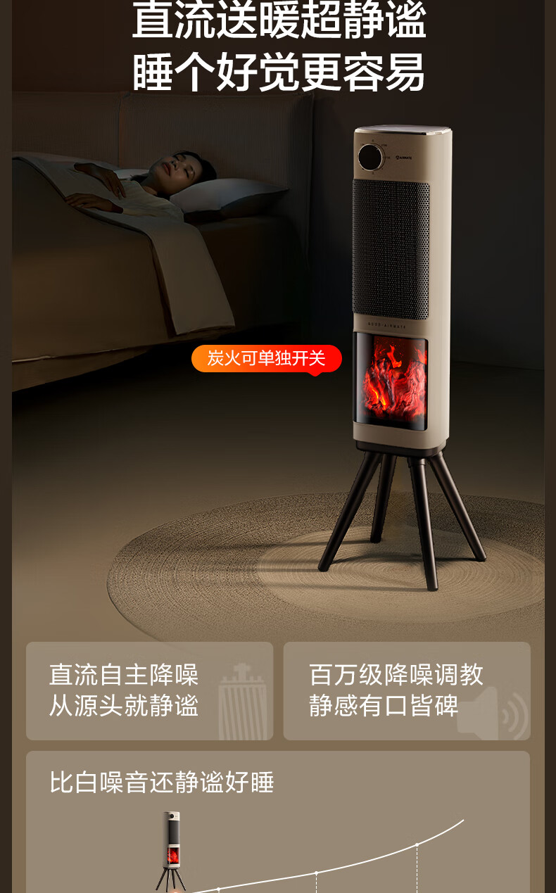 2025【火热】双升级炭火融融 全屋暴暖;3000转直流风轮超4倍暖力 暖得远还静谧;抗菌石墨烯热能 暖得健康又透彻;高仿真5D立体炭火细腻燃炭感 跳动的幸褔感;法式小高脚让你躺沙发或窝单人椅取暖观火都刚好