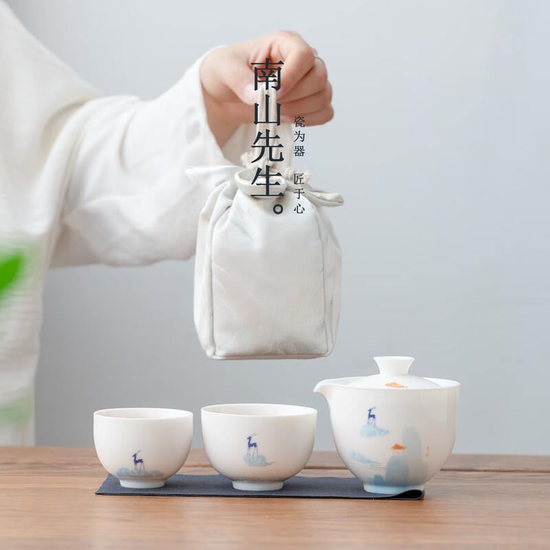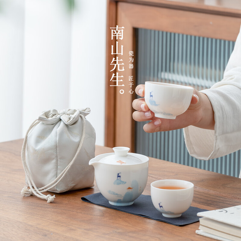 南山先生 旅行茶具陶瓷一壶二杯快客杯户外