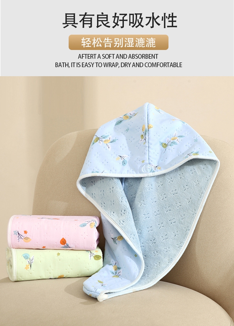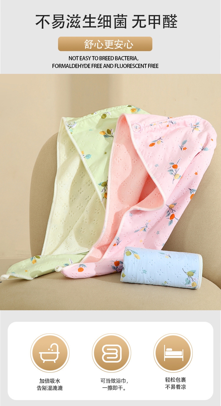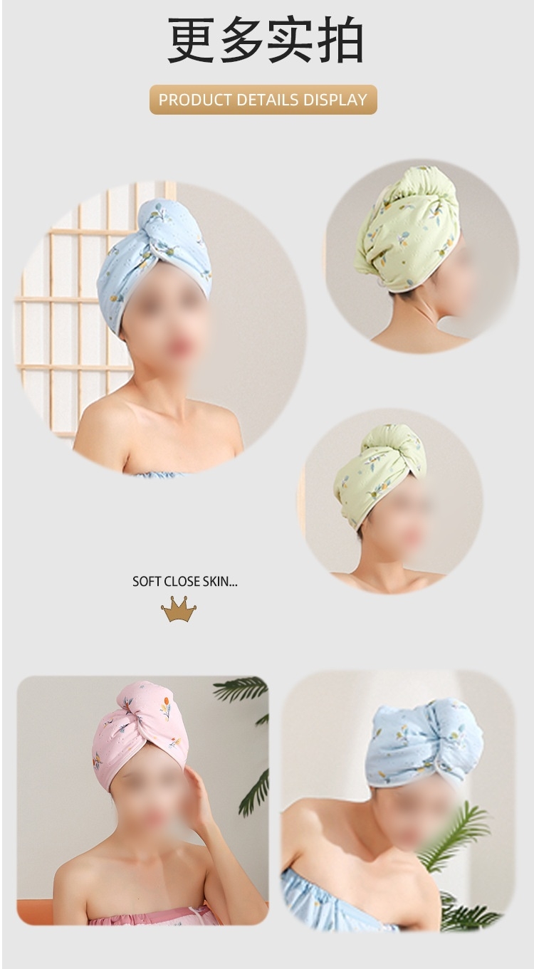 吸水力强,干发速度快;穿戴便捷,解放双手;柔软亲肤,使用感舒适