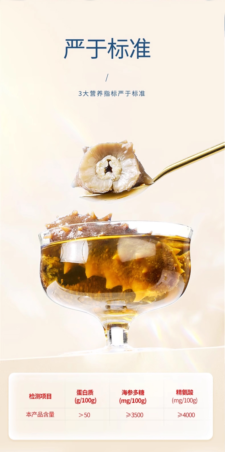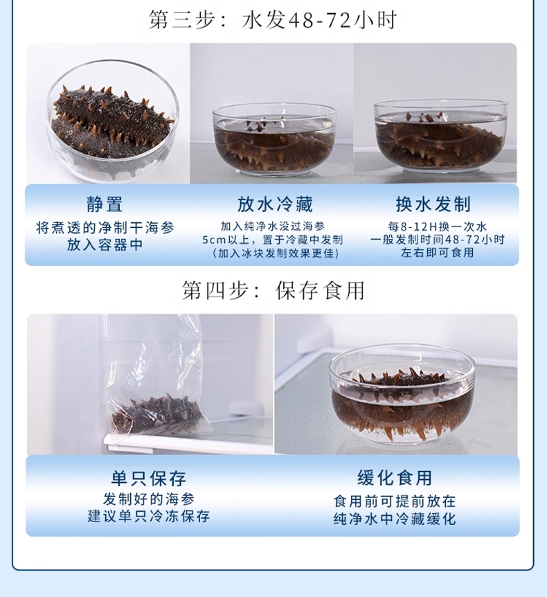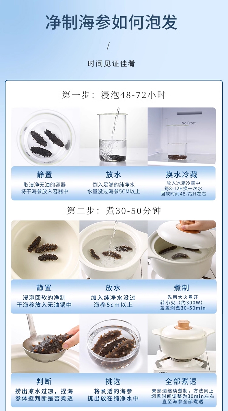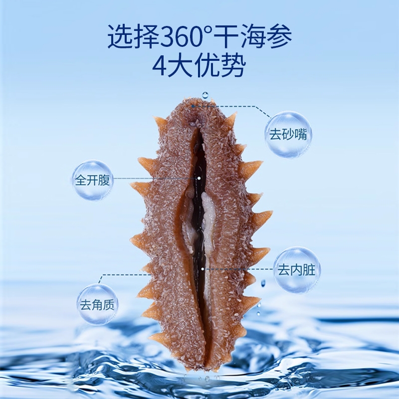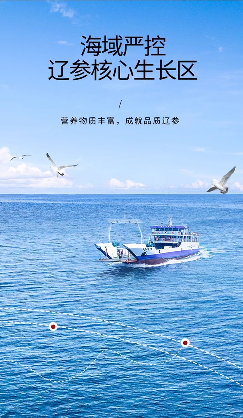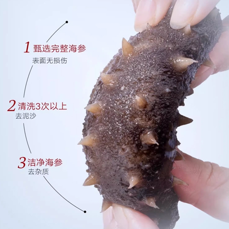 天然海场,精挑海参,肉壁厚实、海参筋洁白粗壮;优选纯正大连海参;三年以上壮年大连海参,海参富含58种营养成分