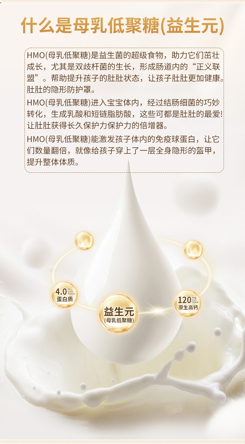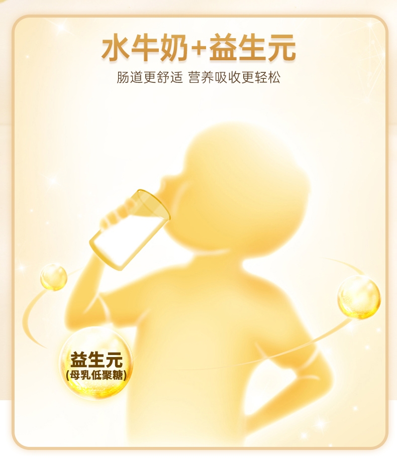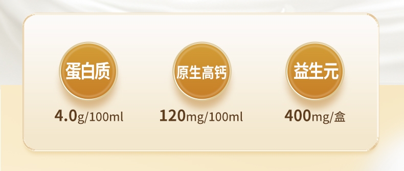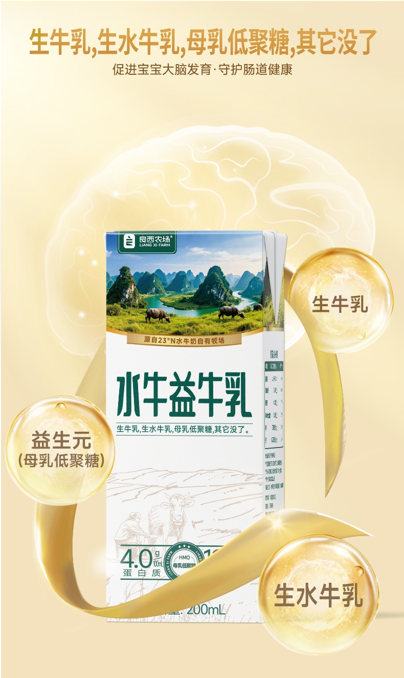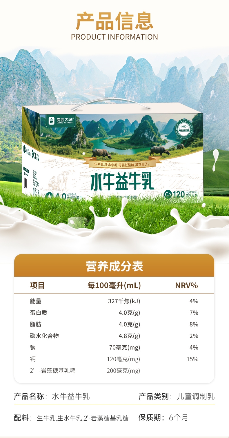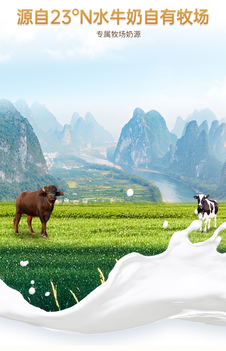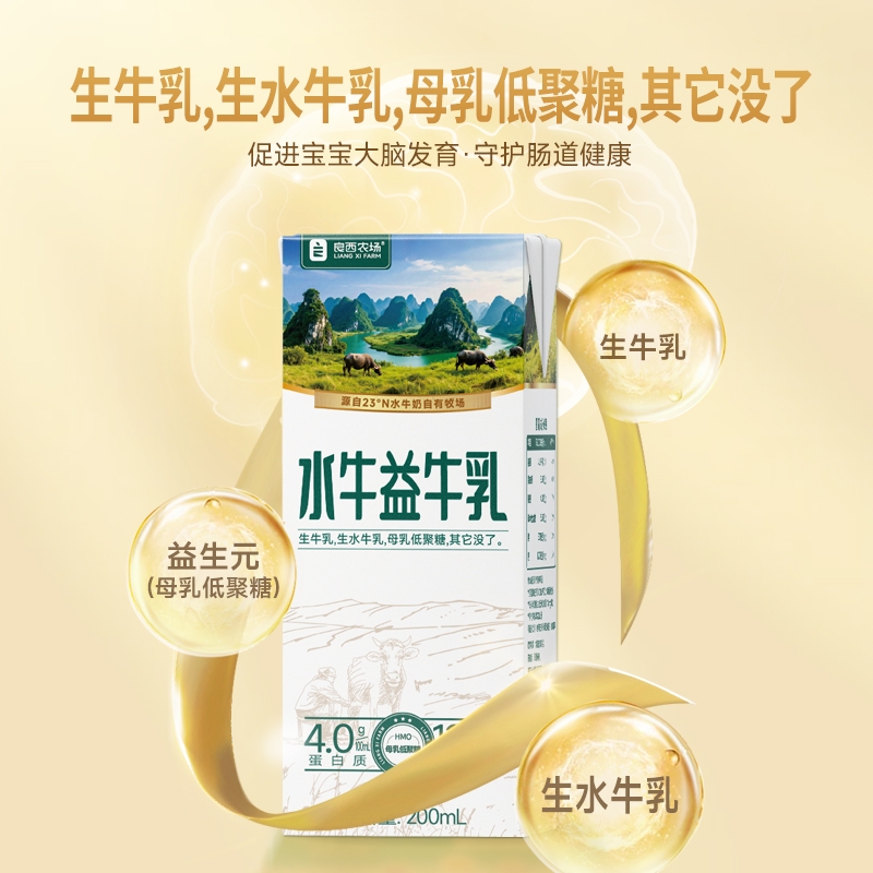 源自北纬23°水牛奶自有牧场;4.0g高蛋白120mg原生高钙,营养加倍;创新加入益生元(母乳低聚糖),肠道舒适好吸收;无任何化学添加,全家老小都能喝