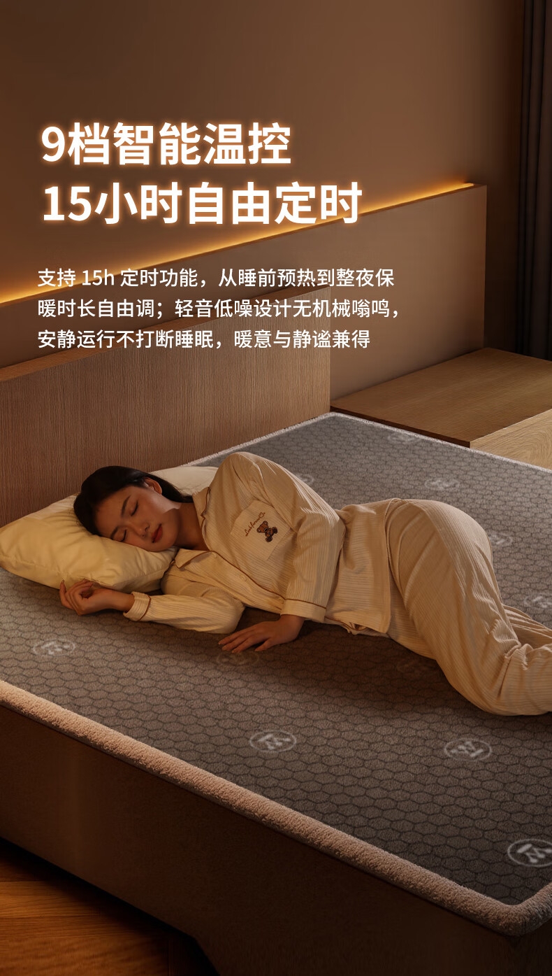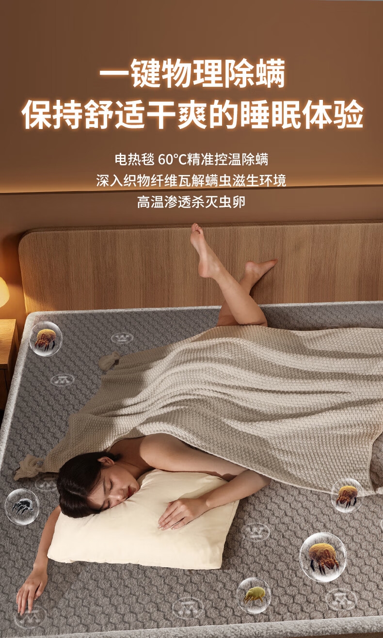 双控独立调温;一键除螨烘被、可水洗;15H定时
